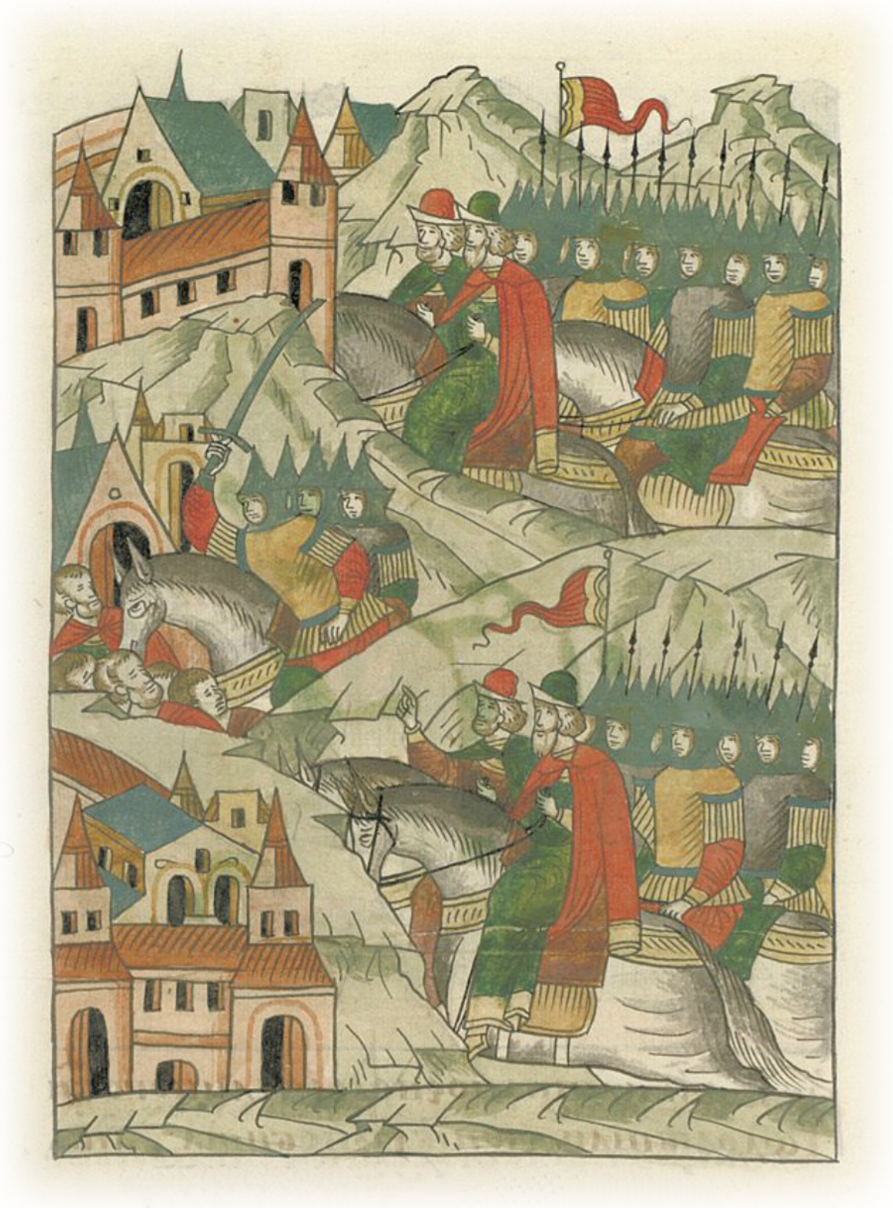 Воеводы великого князя Ивана Васильевича выходят на Ивангород и разоряют немецкую землю.