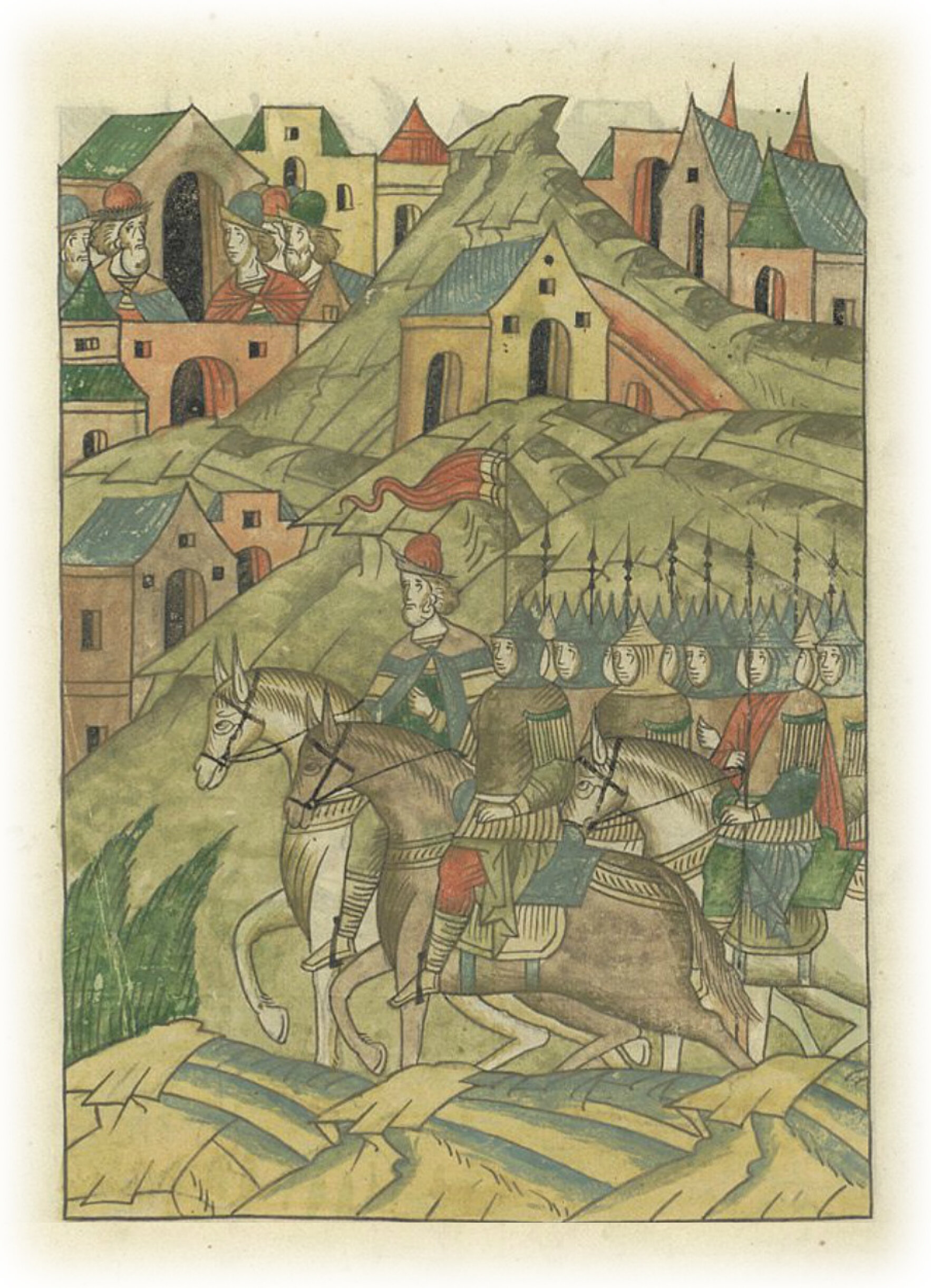 Языки говорят воеводам царя Ивана Васильевича, что магистр окопался большим рвом вокруг города Рындола, бьет из пушек и пищалей и приступает к Рындолу.