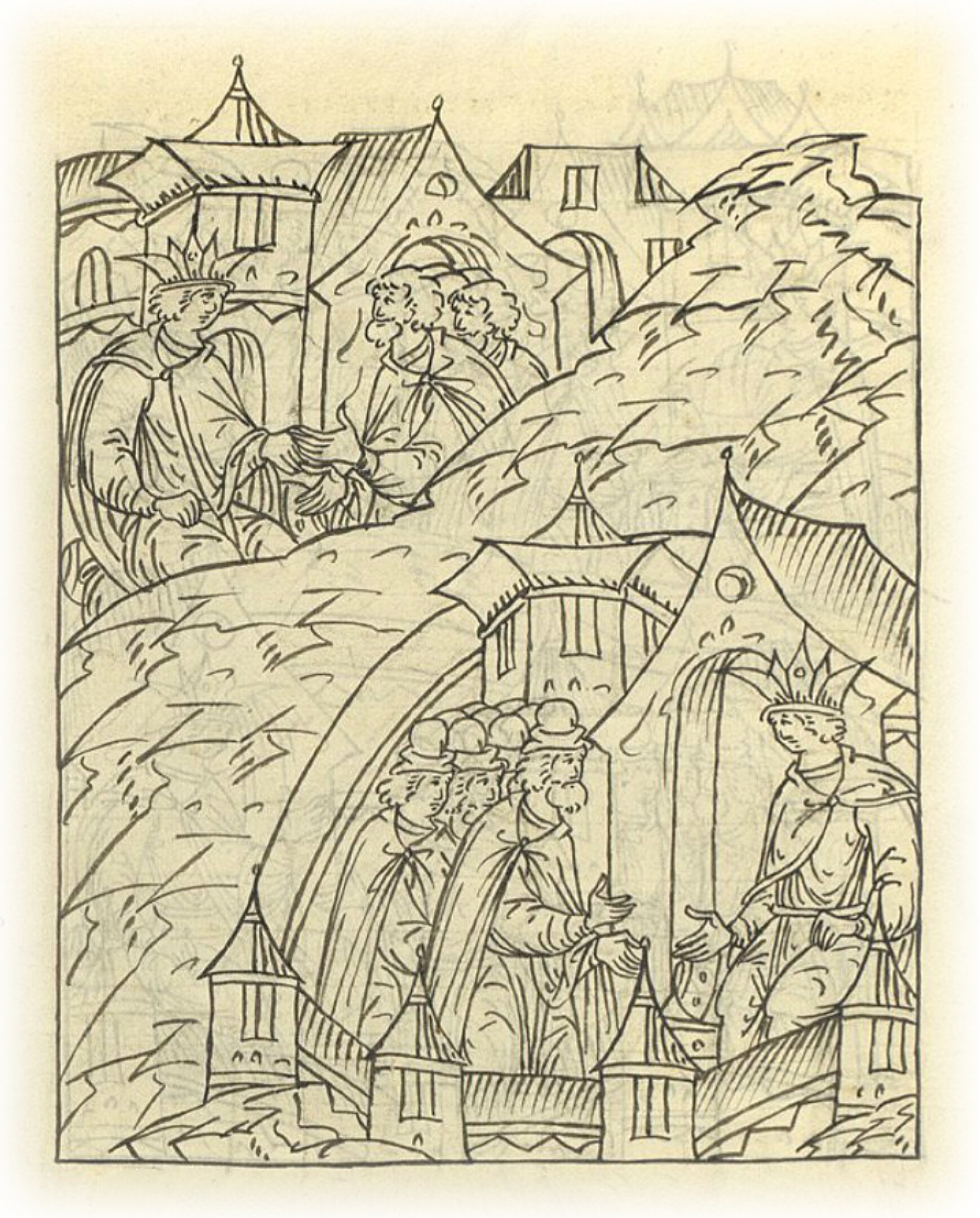 Ругодивские посадники Яким и Захар приезжают в Москву. Воеводы царя Ивана Васильевича Алексей Адашев и Иван Михайлов сообщают им, что государь пожалует их, если сдадут его воеводам помимо Ругодива Вышгород.