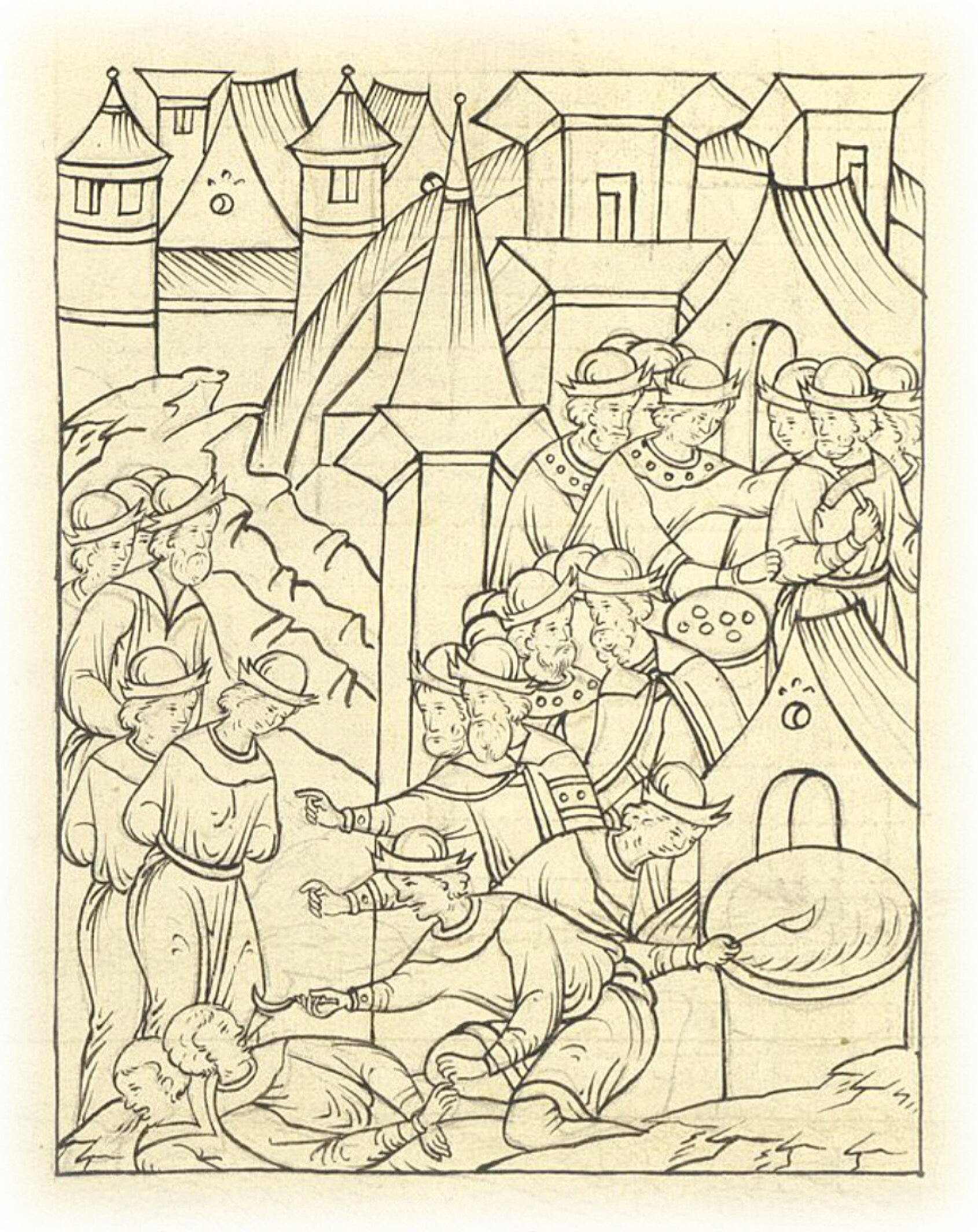 Языки говорят воеводам царя Ивана Васильевича, что магистр окопался большим рвом вокруг города Рындола, бьет из пушек и пищалей и приступает к Рындолу.