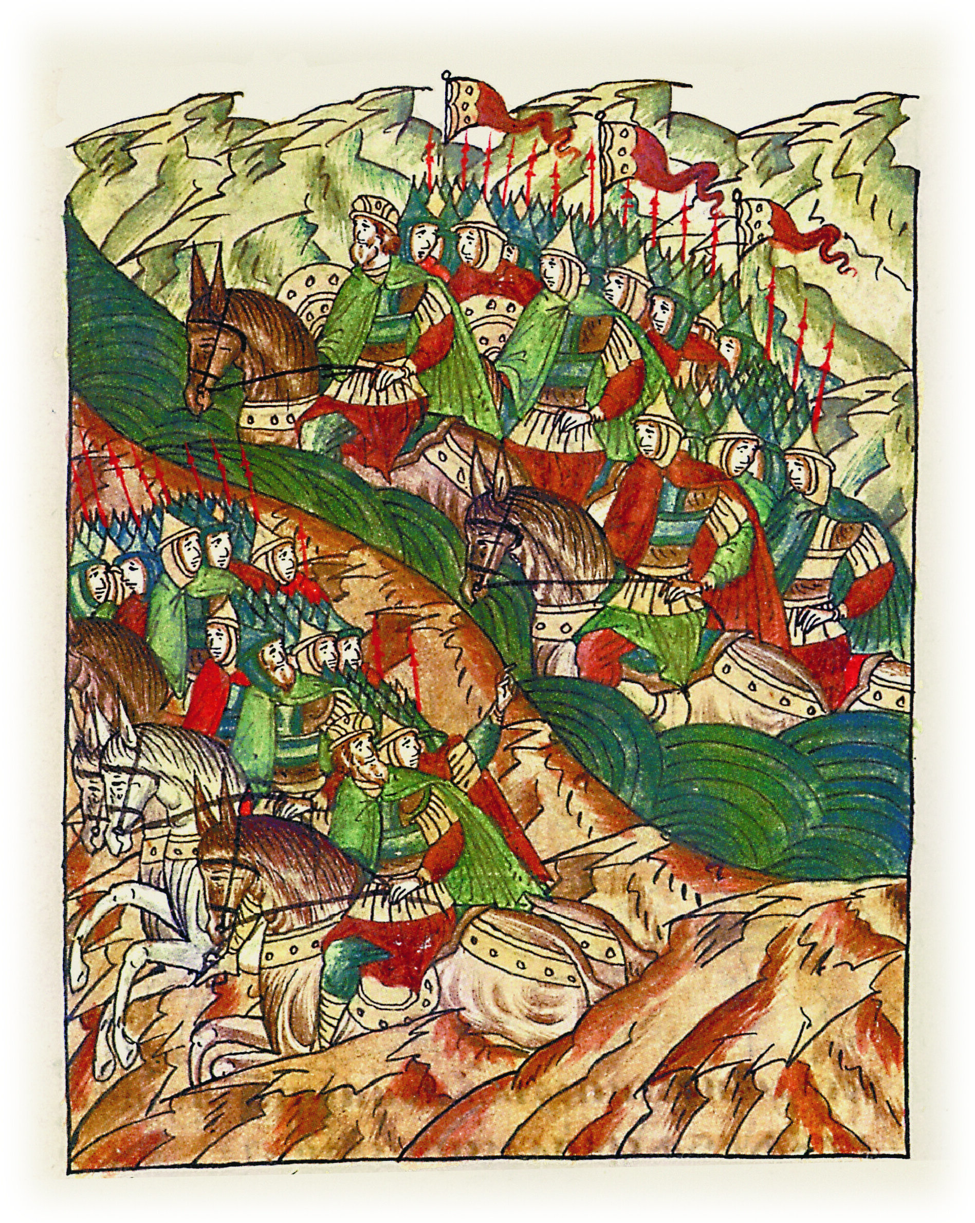 Воеводы царя Ивана Васильевича, разделившись, идут в погоню за царем Емгурчеем.