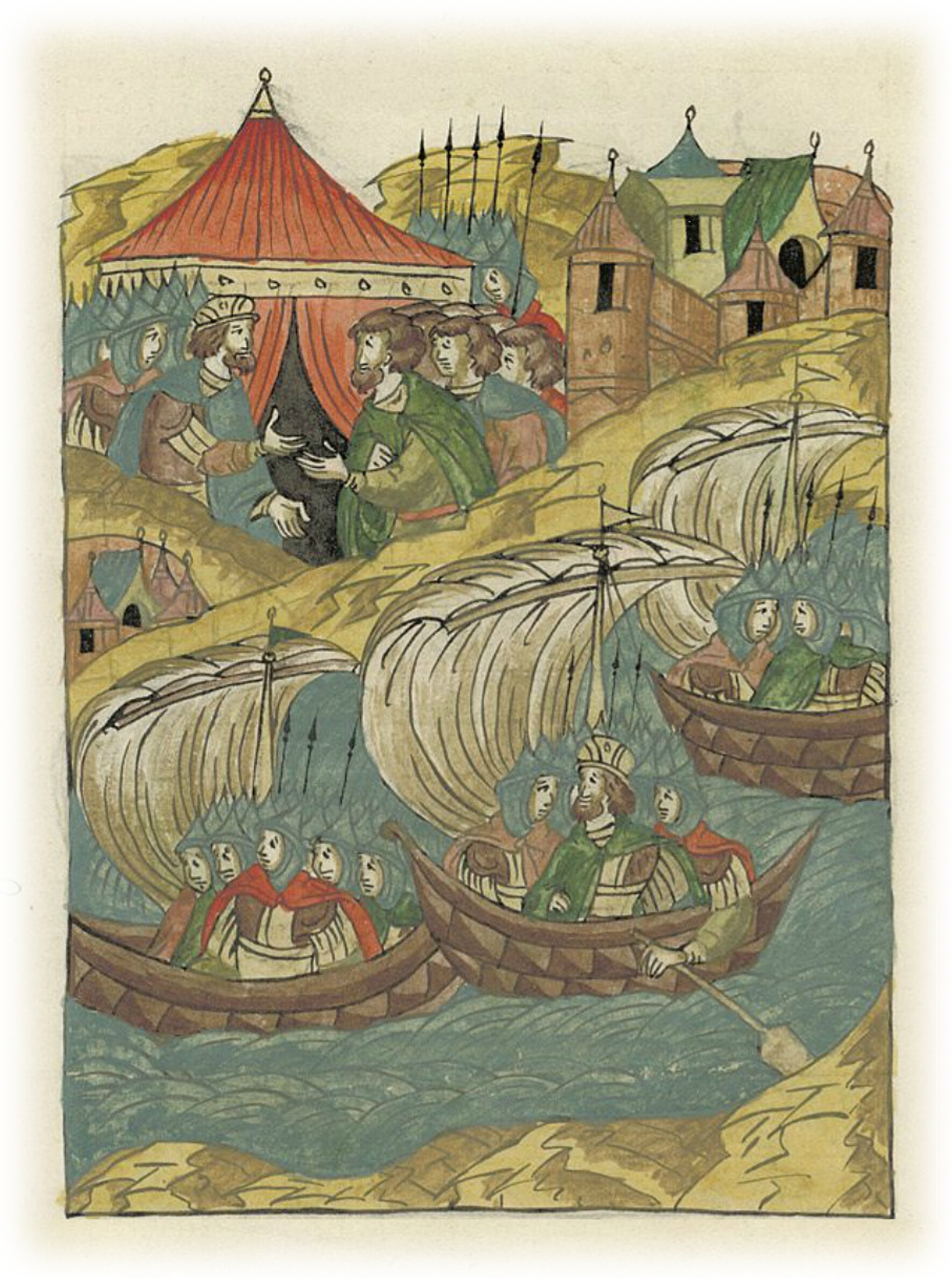 Князь Всеволод Юрьевич заключает с болгарами мир и возвращается во Владимир на ладьях.