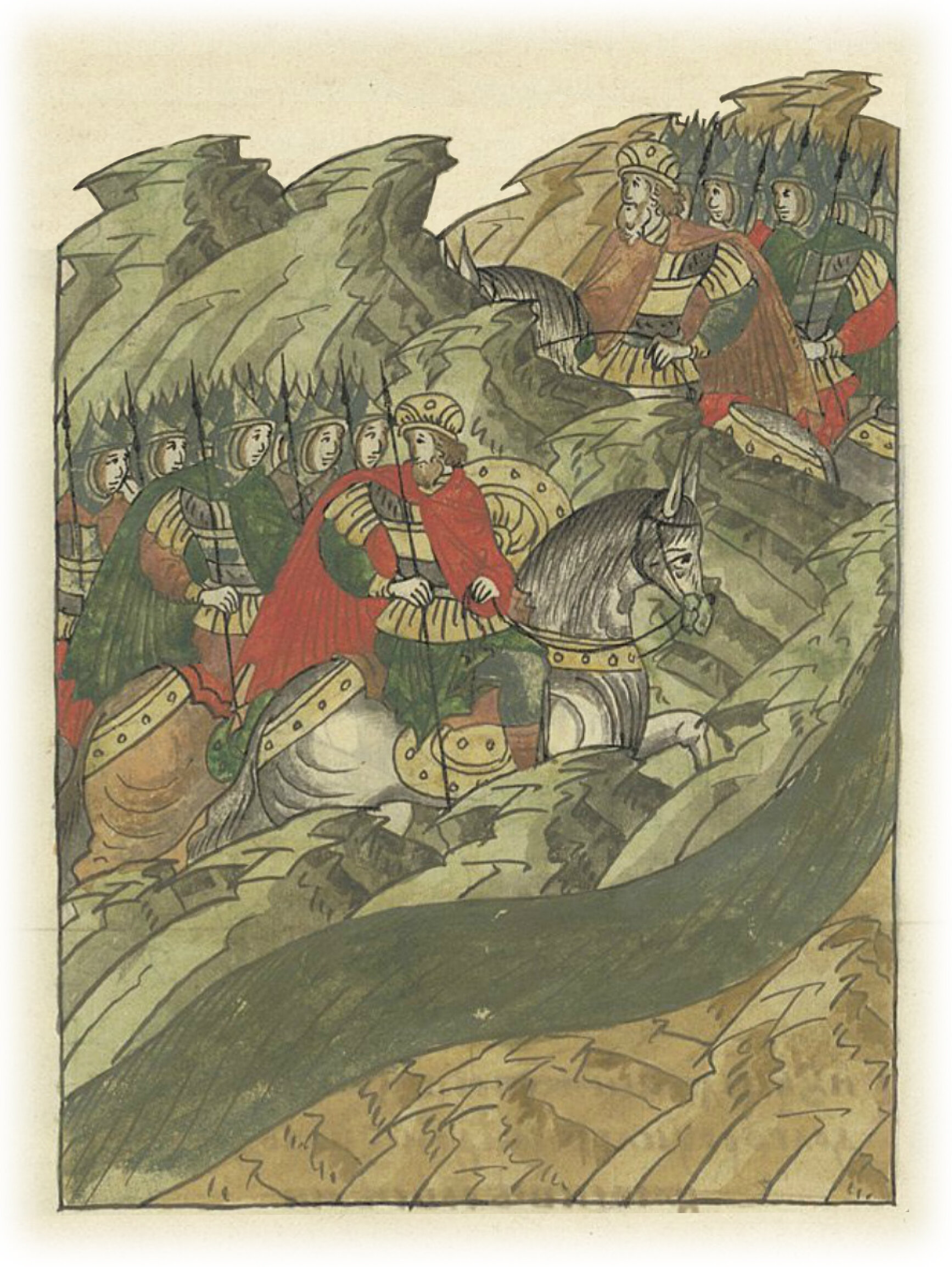 Воеводы царя Ивана Васильевича, разделившись, идут в погоню за царем Емгурчеем.