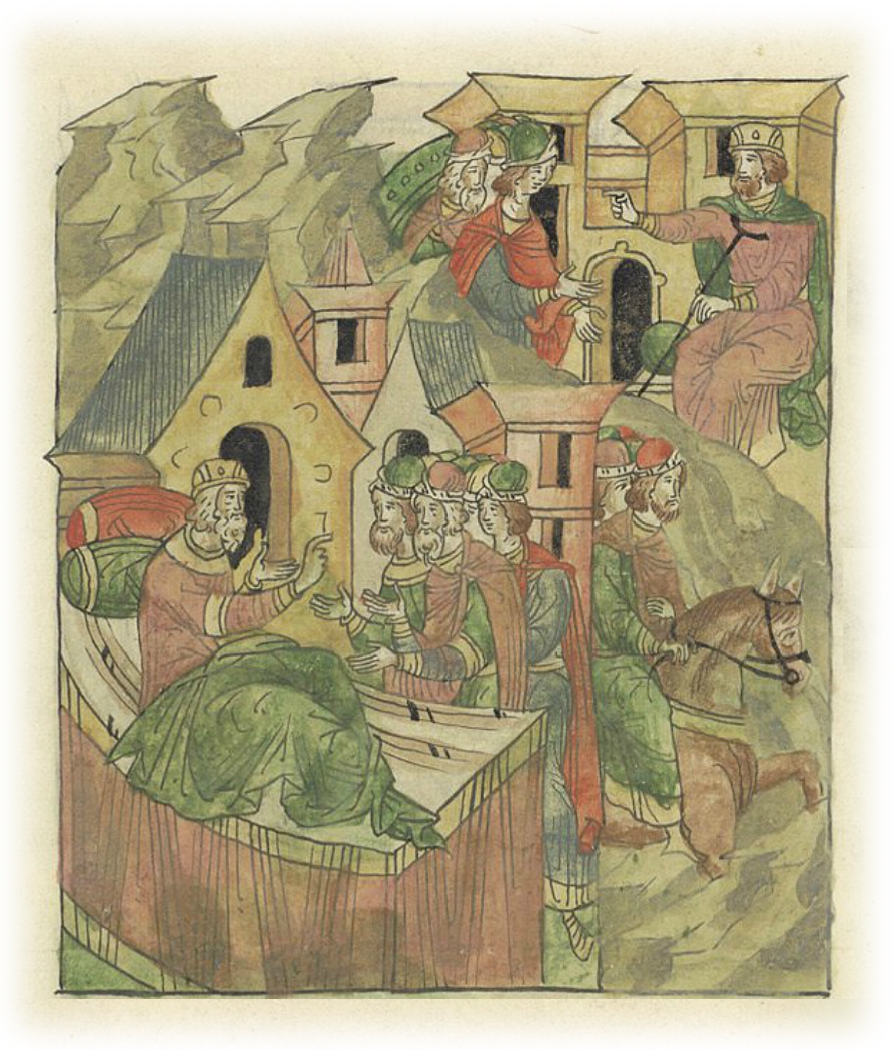 Ругодивские посадники Яким и Захар приезжают в Москву. Воеводы царя Ивана Васильевича Алексей Адашев и Иван Михайлов сообщают им, что государь пожалует их, если сдадут его воеводам помимо Ругодива Вышгород.