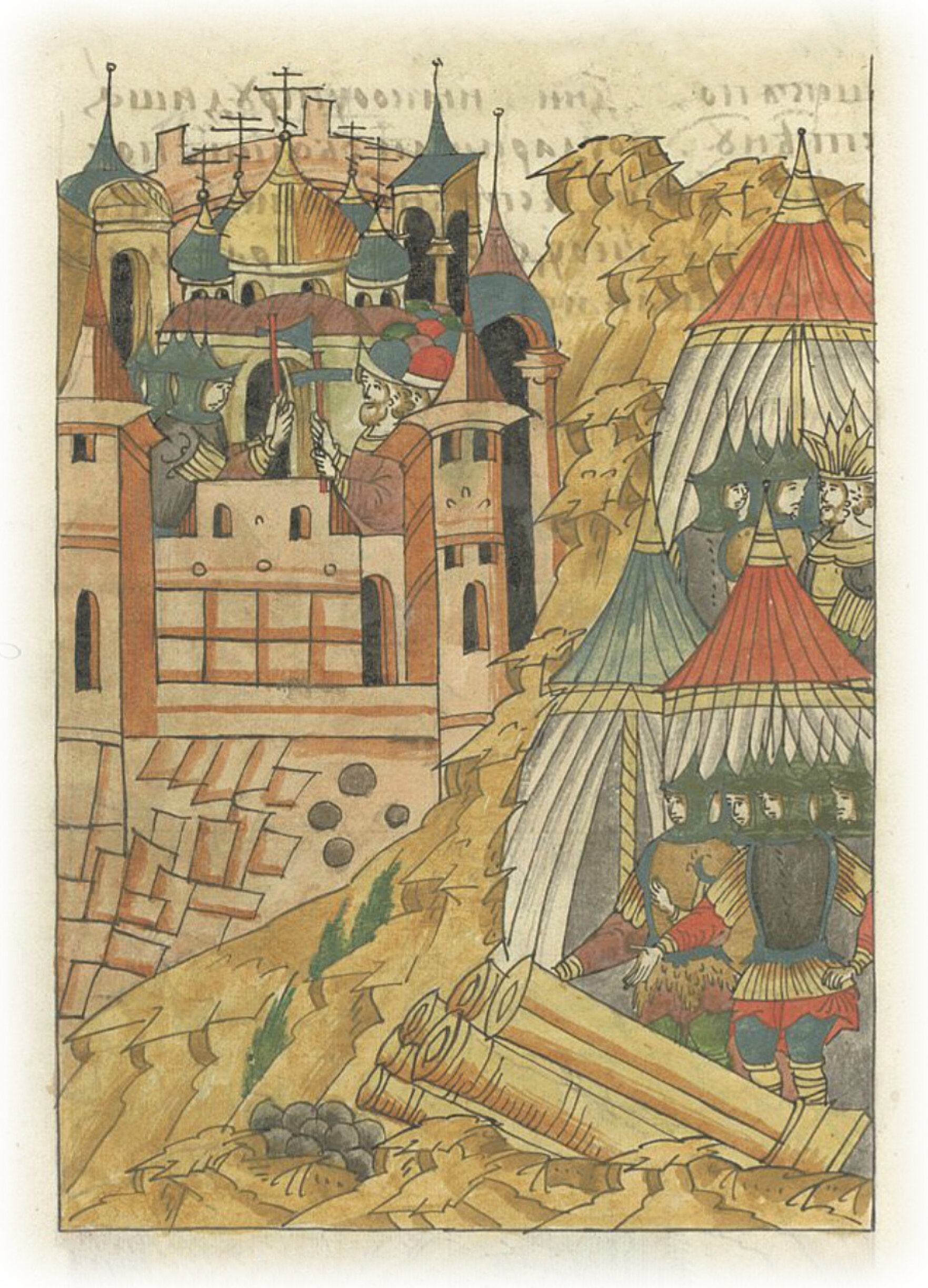Языки говорят воеводам царя Ивана Васильевича, что магистр окопался большим рвом вокруг города Рындола, бьет из пушек и пищалей и приступает к Рындолу.