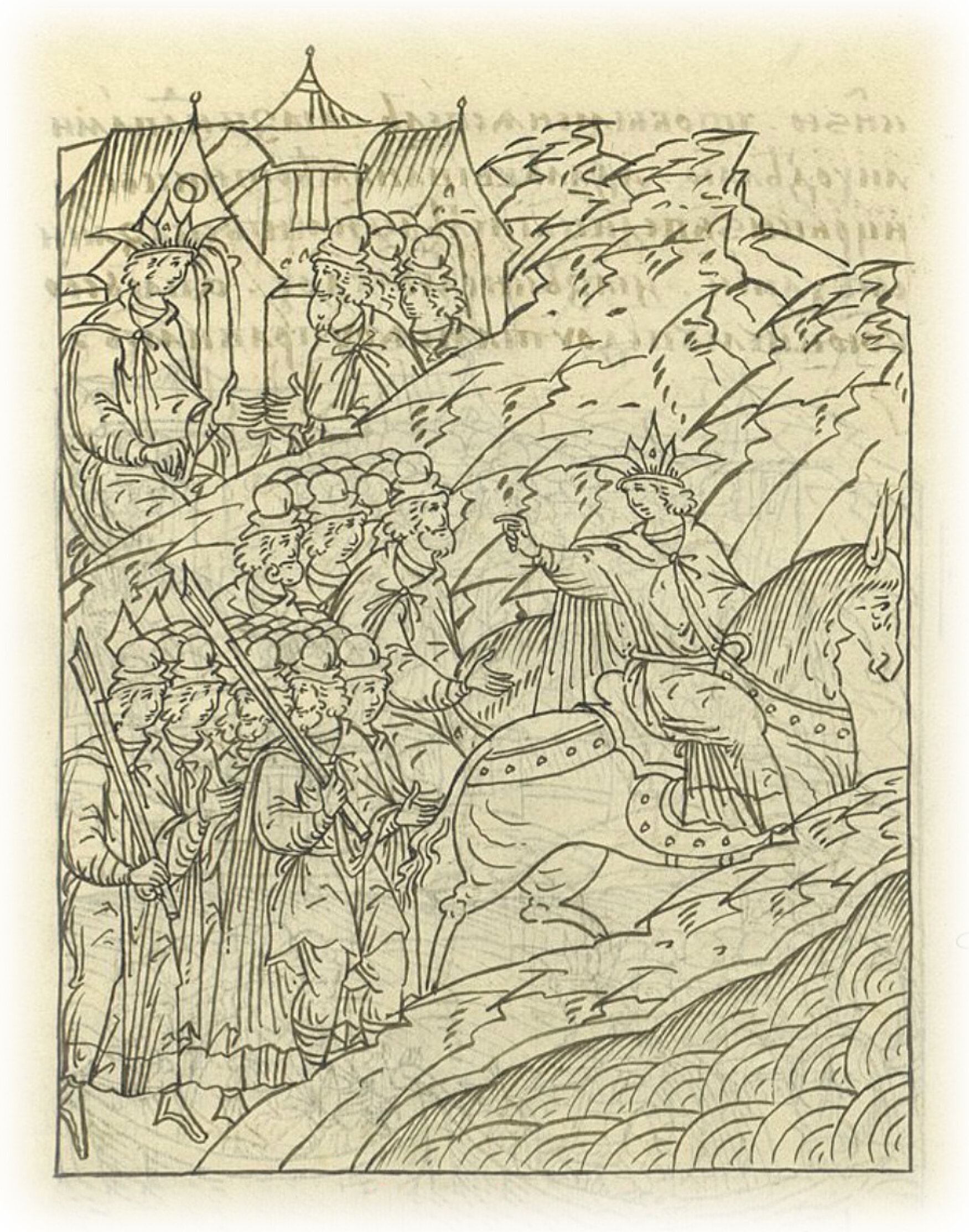 Языки говорят воеводам царя Ивана Васильевича, что магистр окопался большим рвом вокруг города Рындола, бьет из пушек и пищалей и приступает к Рындолу.