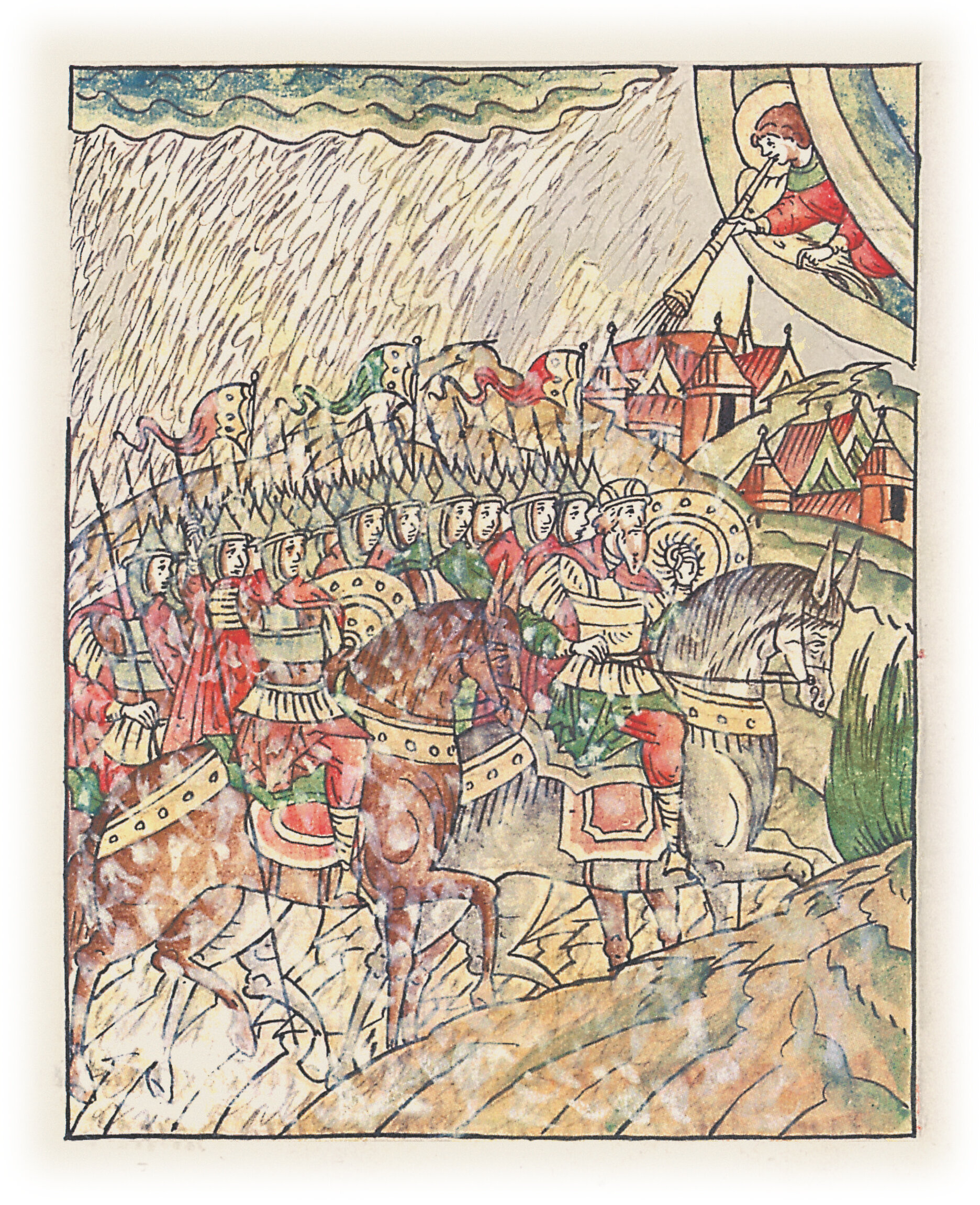 Князь Всеволод Мстиславич с немцами и новгородцами идет в поход на Суздаль и Ростов и по дороге попадает в страшные вихри.