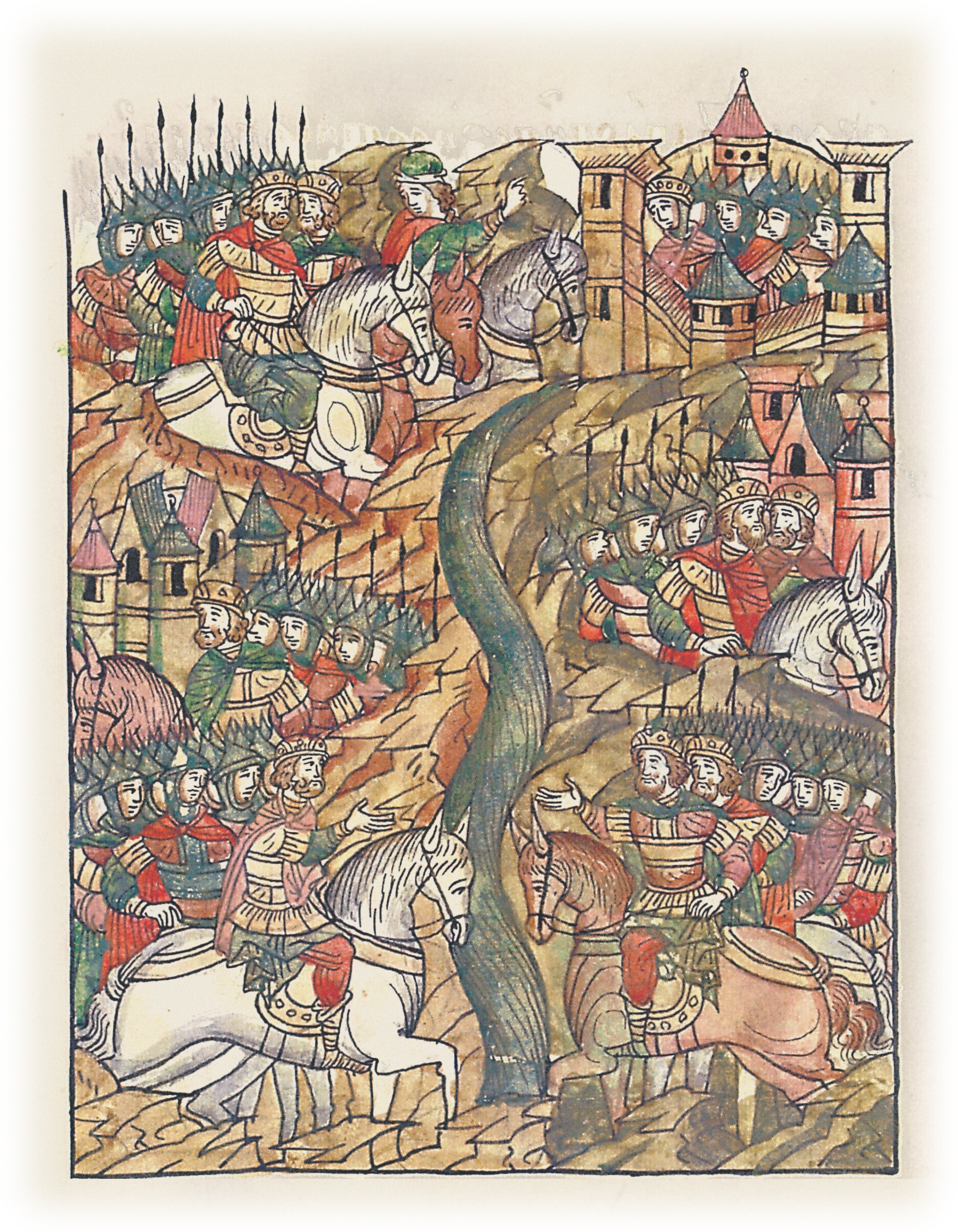 Воеводы царя Ивана Васильевича, разделившись, идут в погоню за царем Емгурчеем.