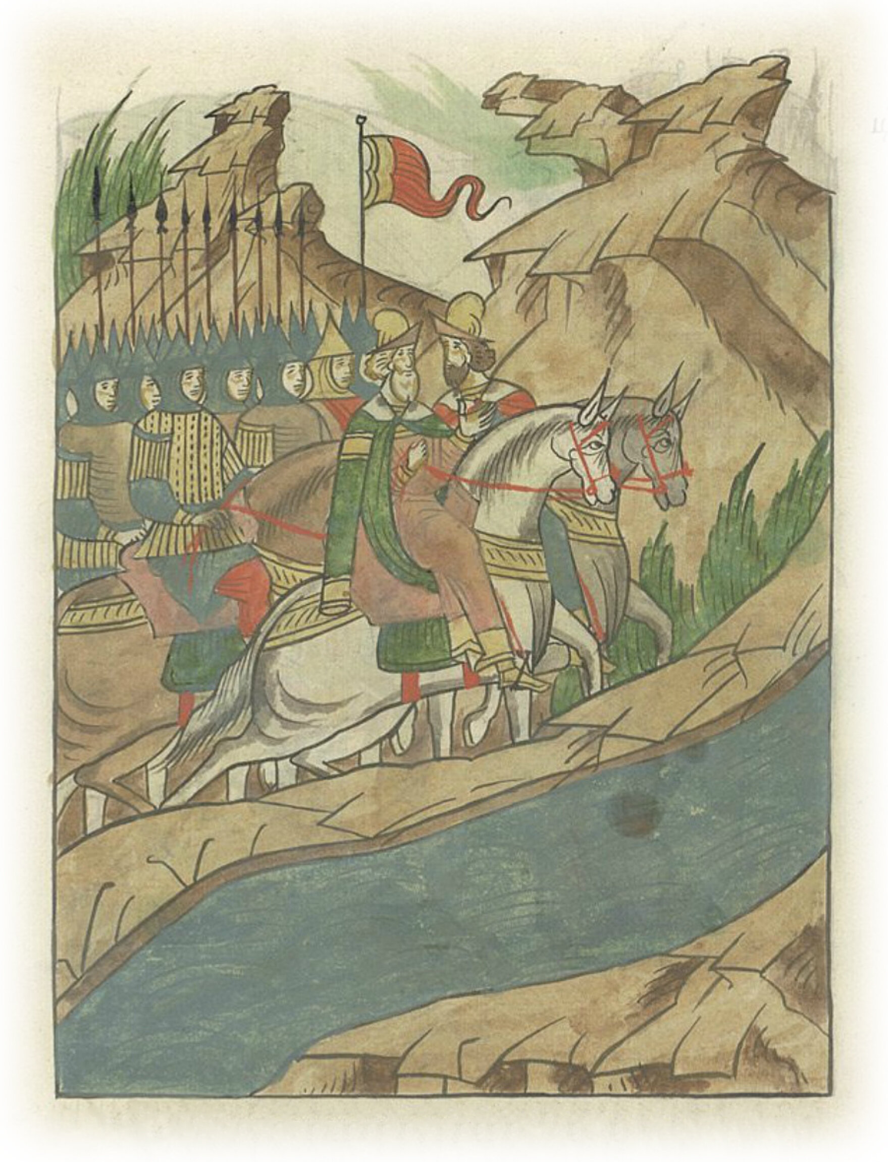 И воеводы великого князя пошли к Шелоне; и когда пришли они к берегу той реки, где переправляться через нее,