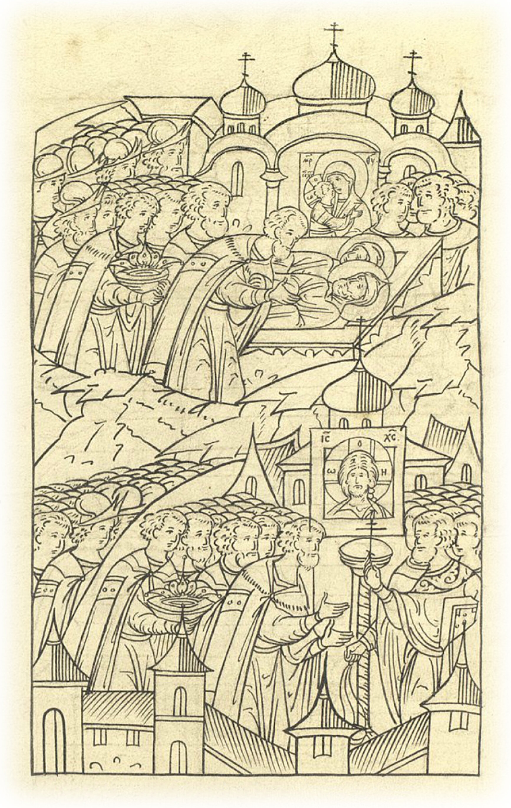 И приходит государь в соборную церковь города того Рождества Пречистой и к великим чудотворцам князю Петру и княгине Февронии, и по всем святым местам обходит с молением.