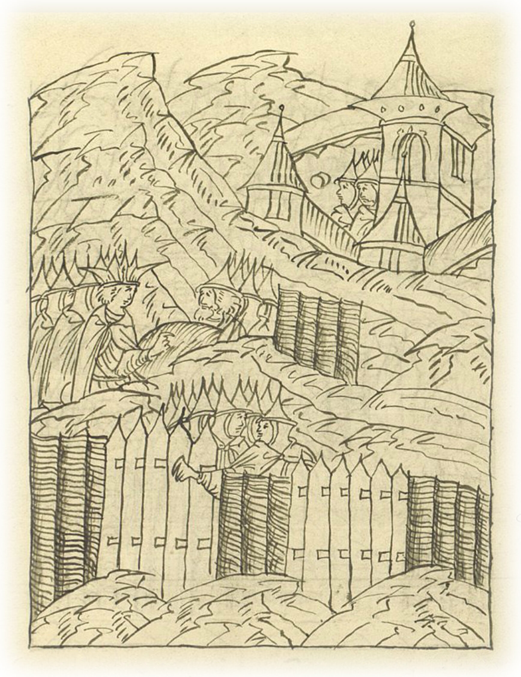 А где нельзя турам быть, государь, осмотрев места, повелел дьяку своему Ивану Выродкову между турами тын ставить. И окружил государь город Казань своими крепостями: ни в город, ни из города весть не пройдет.