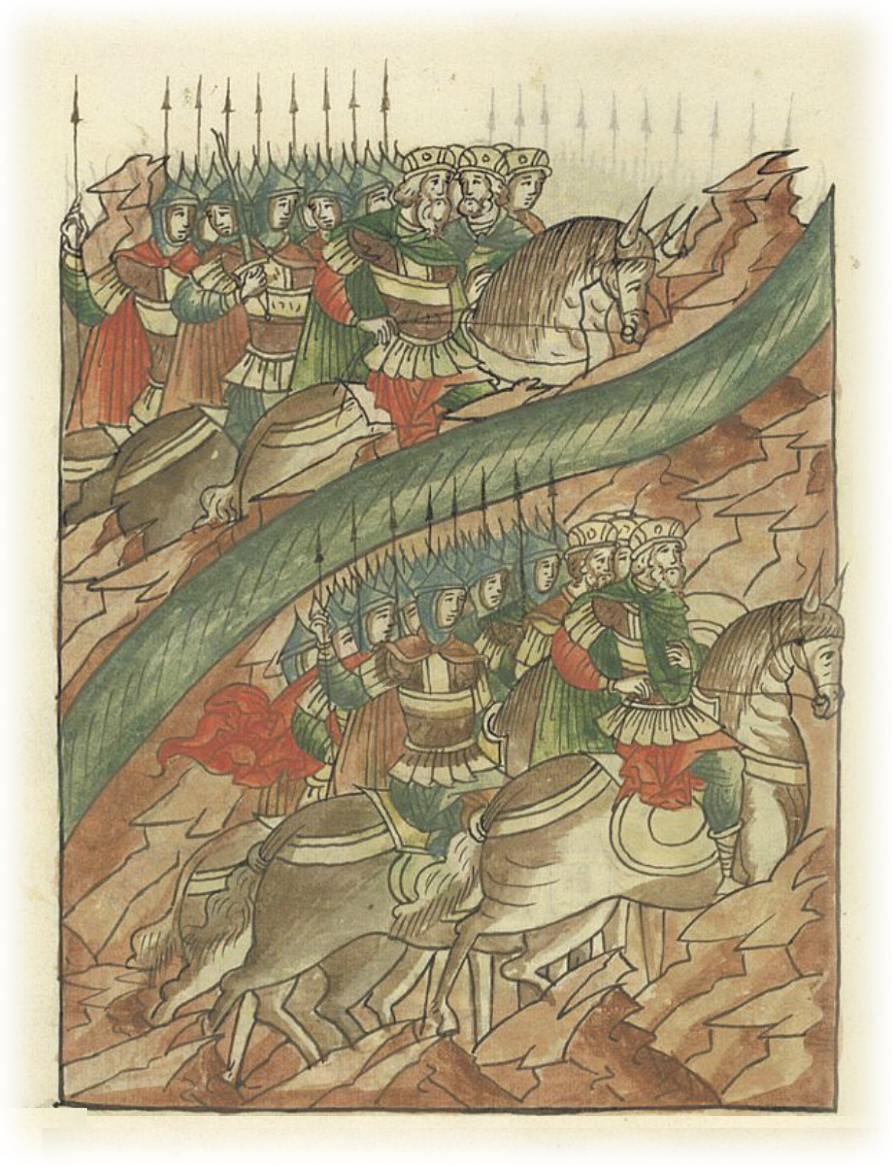 Воеводы царя Ивана Васильевича, разделившись, идут в погоню за царем Емгурчеем.