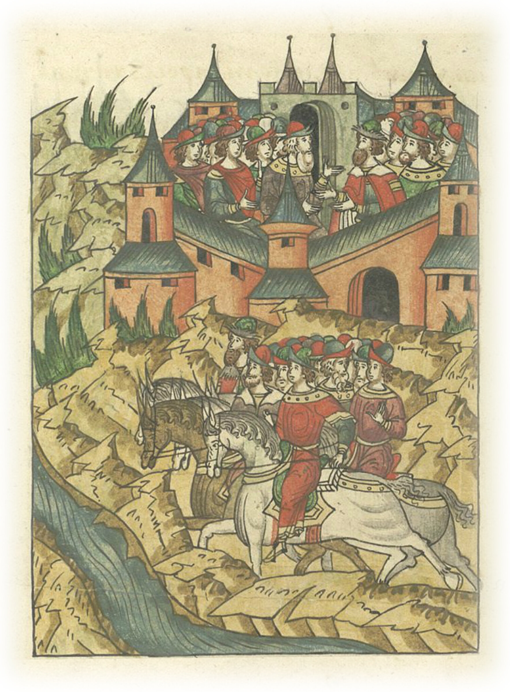 Языки говорят воеводам царя Ивана Васильевича, что магистр окопался большим рвом вокруг города Рындола, бьет из пушек и пищалей и приступает к Рындолу.