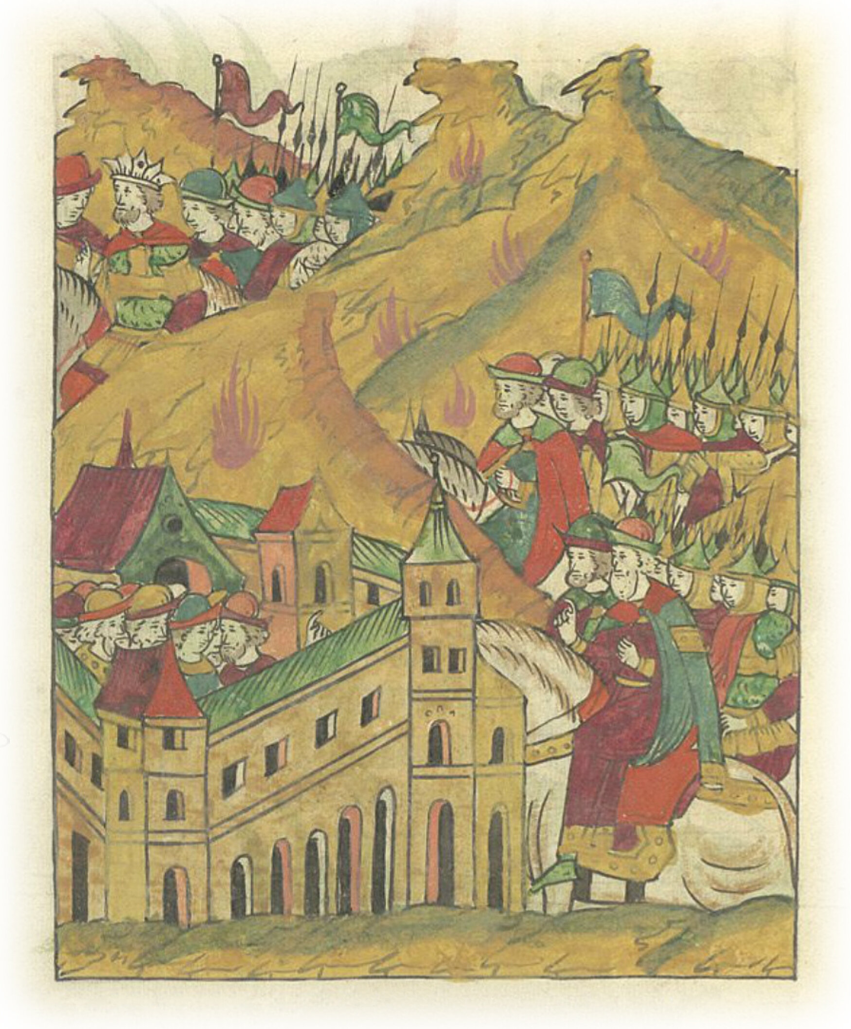Воеводы же великого князя пришли к городу, а царь от тех вестей поспешил от города прочь со всеми людьми.
