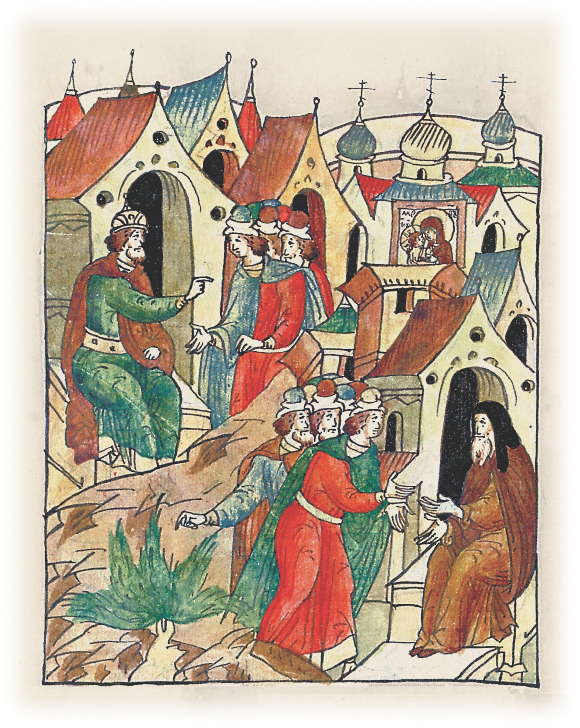 Люди приходят к великому князю Андрею Боголюбскому с жалобами на епископа Феодора. Князь Андрей Боголюбский посылает к епископу Феодору, прося сменить гнев на милость. Феодор ругает князя и богохульствует.