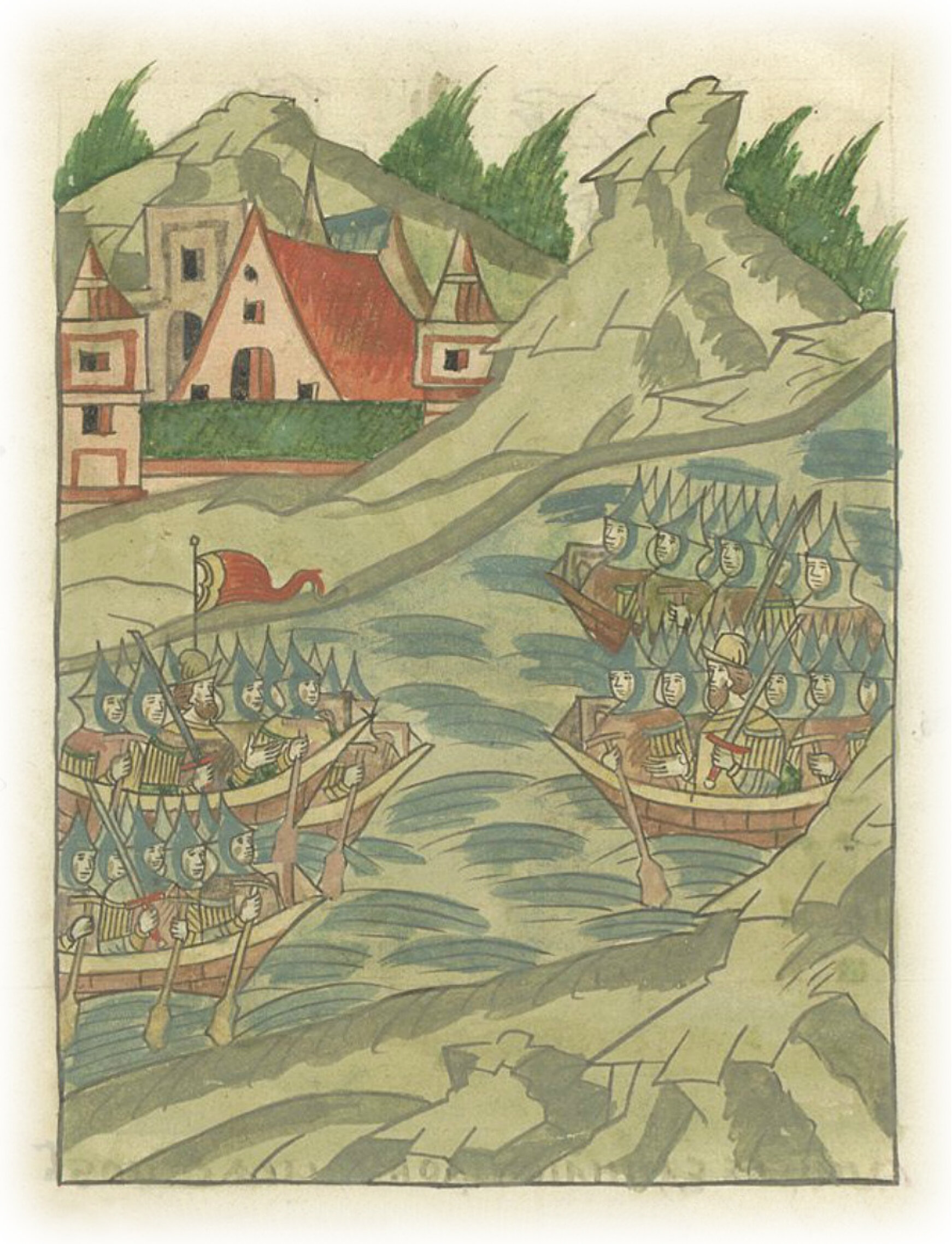 Татары хотят перехватить суда вятчан под Казанью.
