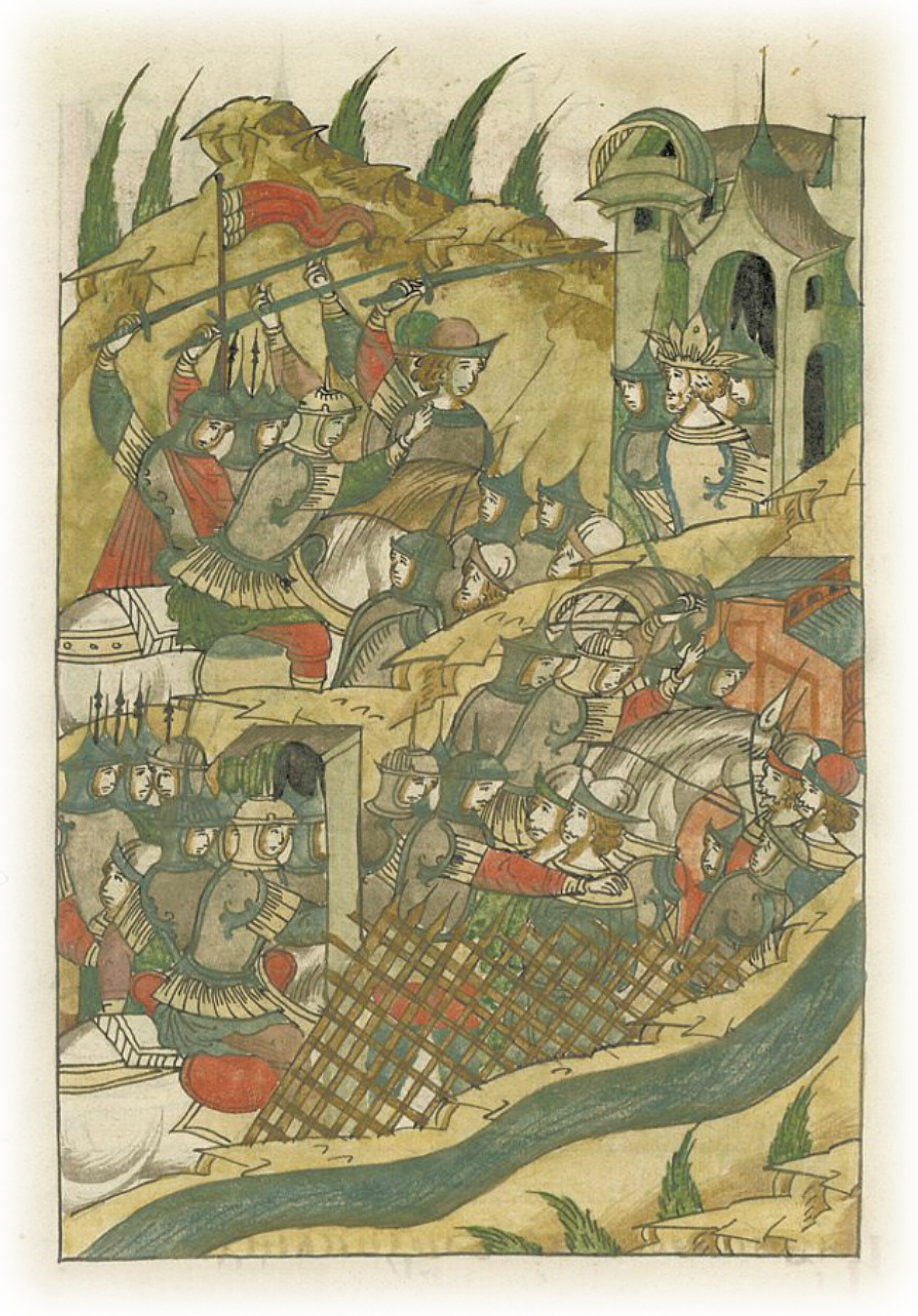 Языки говорят воеводам царя Ивана Васильевича, что магистр окопался большим рвом вокруг города Рындола, бьет из пушек и пищалей и приступает к Рындолу.