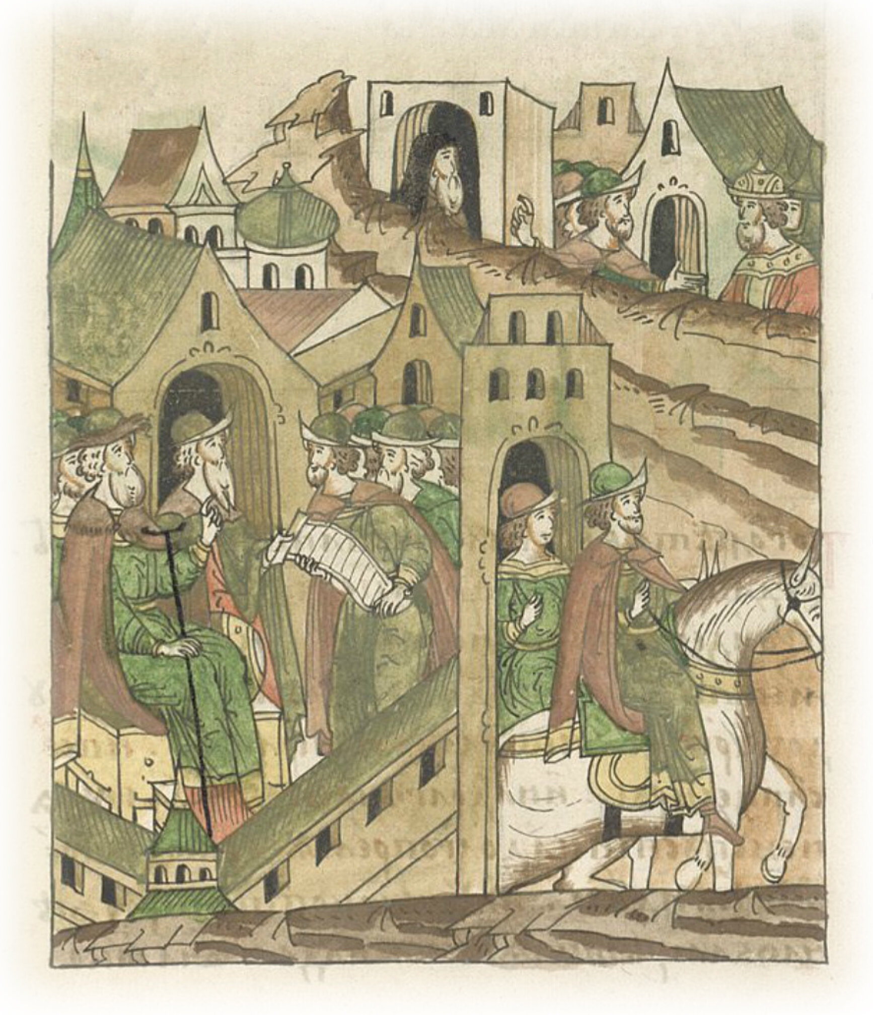 Ругодивские посадники Яким и Захар приезжают в Москву. Воеводы царя Ивана Васильевича Алексей Адашев и Иван Михайлов сообщают им, что государь пожалует их, если сдадут его воеводам помимо Ругодива Вышгород.