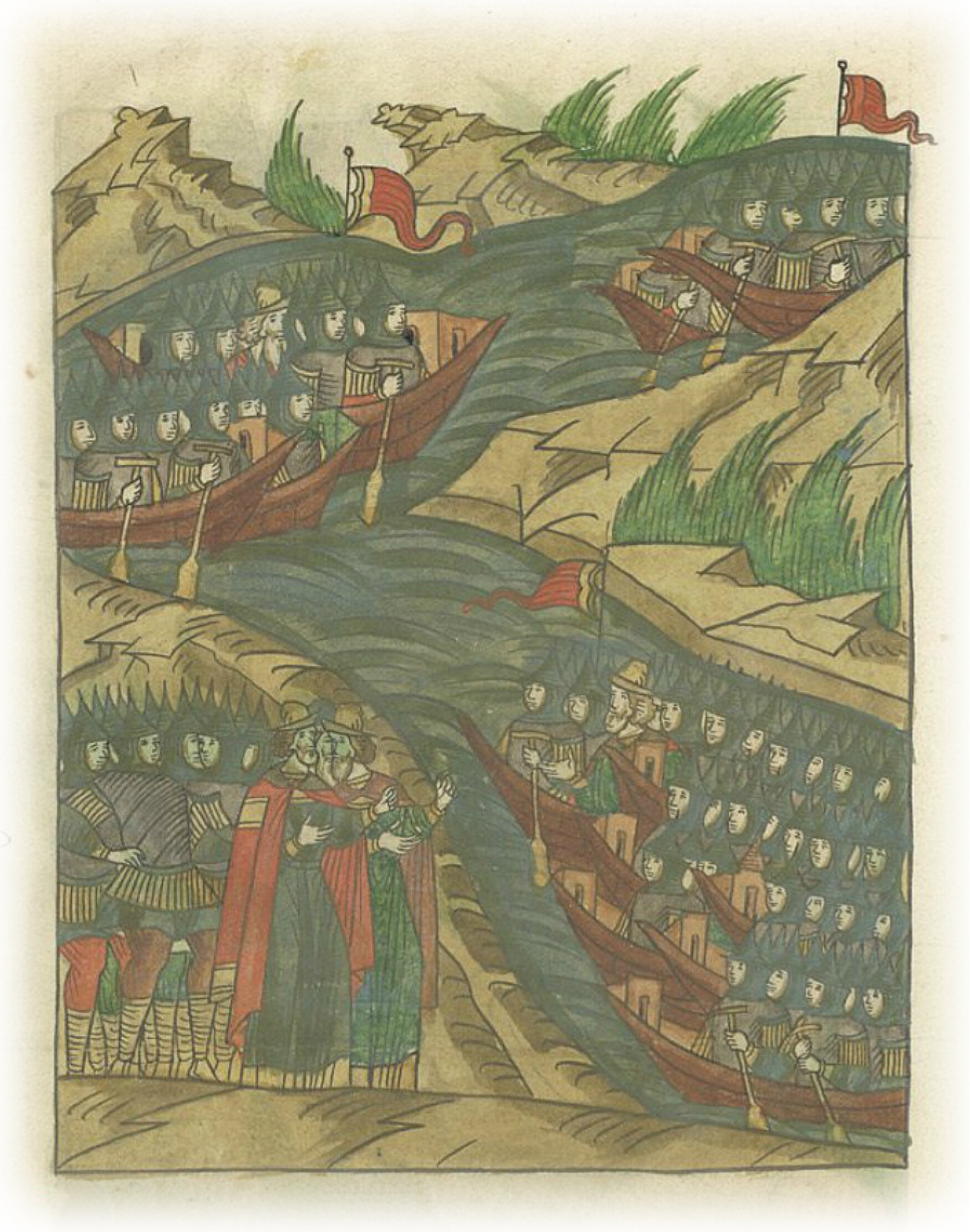 Воевода Иван Руно с семью насадами догоняет татар.