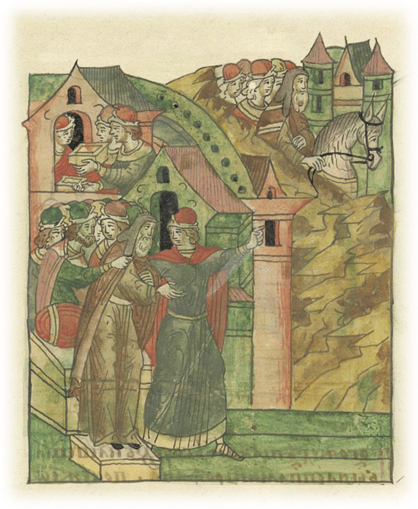 Ругодивские посадники Яким и Захар приезжают в Москву. Воеводы царя Ивана Васильевича Алексей Адашев и Иван Михайлов сообщают им, что государь пожалует их, если сдадут его воеводам помимо Ругодива Вышгород.