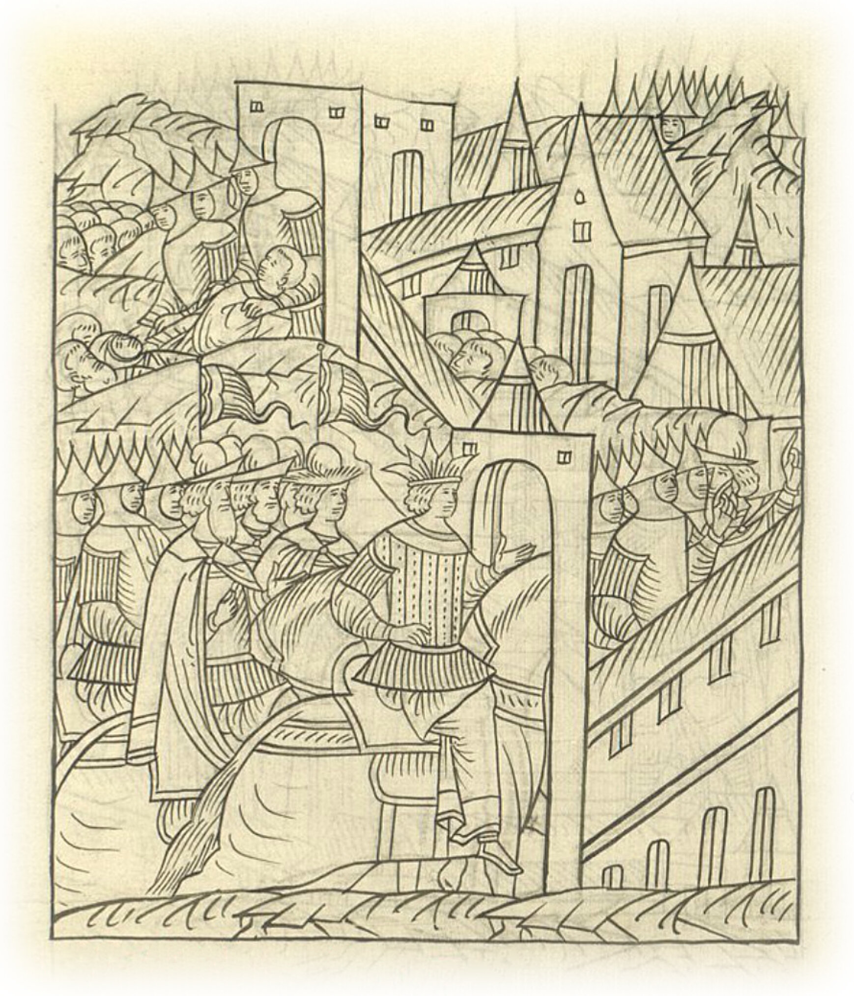 Языки говорят воеводам царя Ивана Васильевича, что магистр окопался большим рвом вокруг города Рындола, бьет из пушек и пищалей и приступает к Рындолу.
