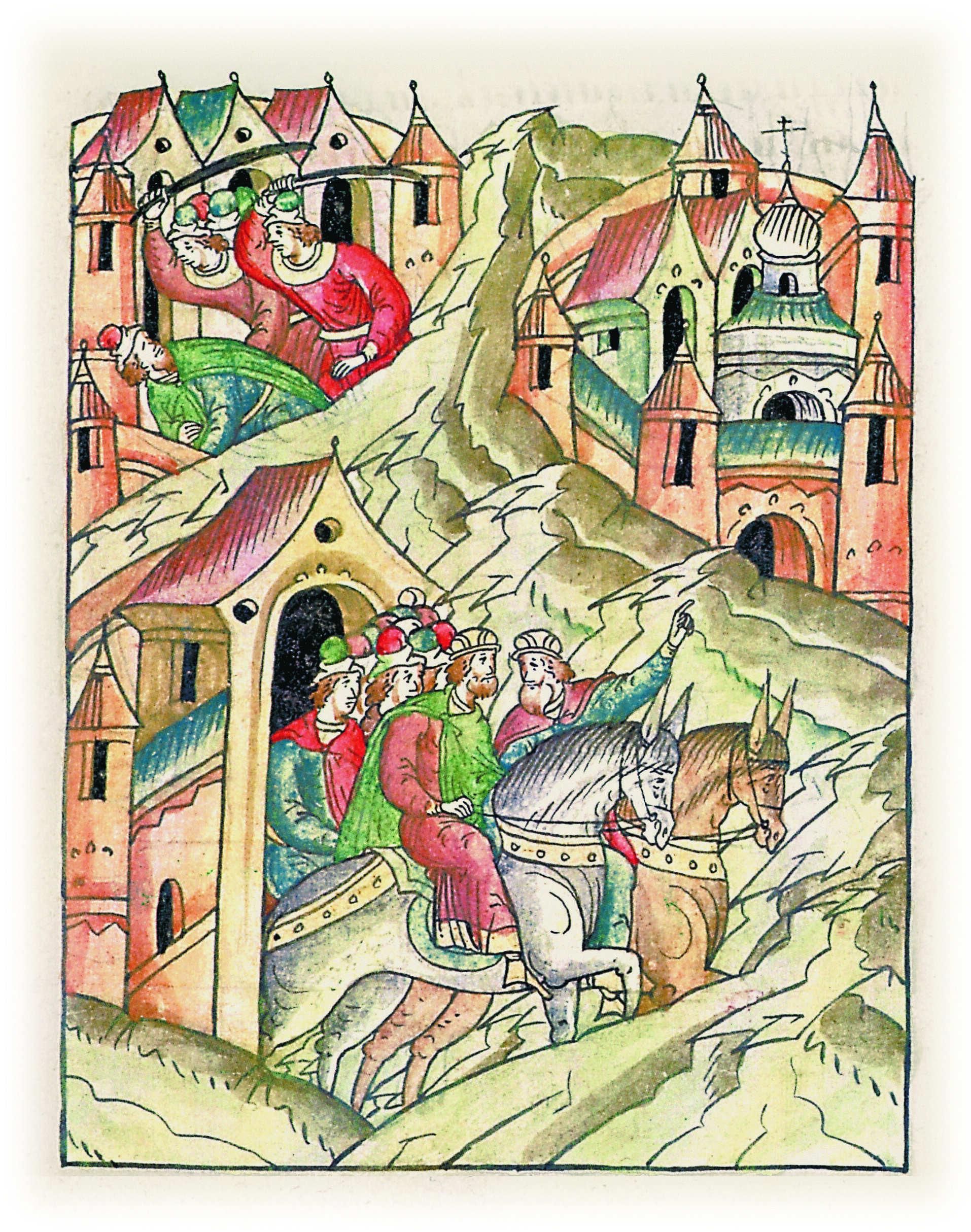 Ругодивские посадники Яким и Захар приезжают в Москву. Воеводы царя Ивана Васильевича Алексей Адашев и Иван Михайлов сообщают им, что государь пожалует их, если сдадут его воеводам помимо Ругодива Вышгород.
