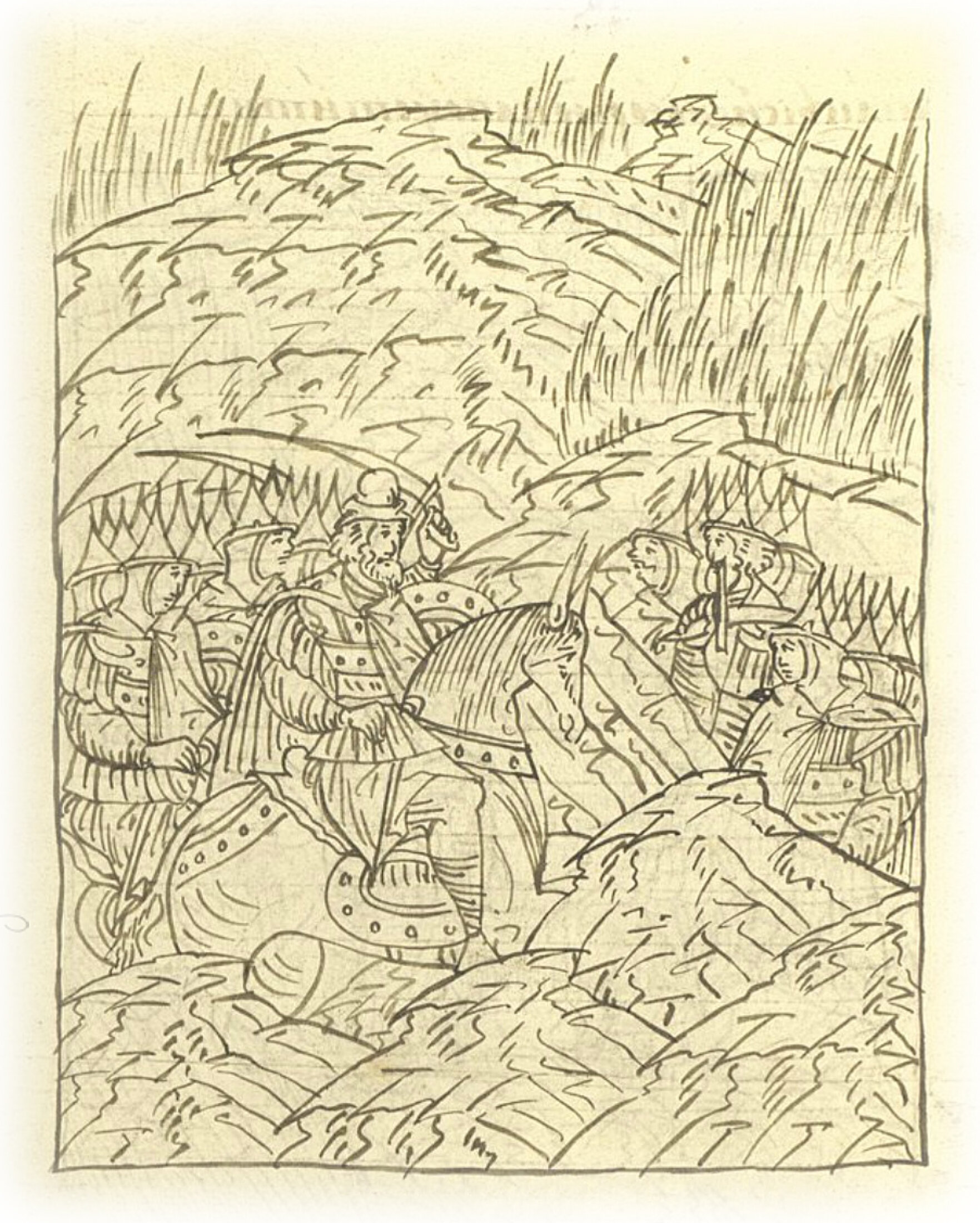 Татары же, увидев князя Александра, многие вышли из леса, конные и пешие, и князь Александр велел к ним приближаться. Татары же все устремились на бой.