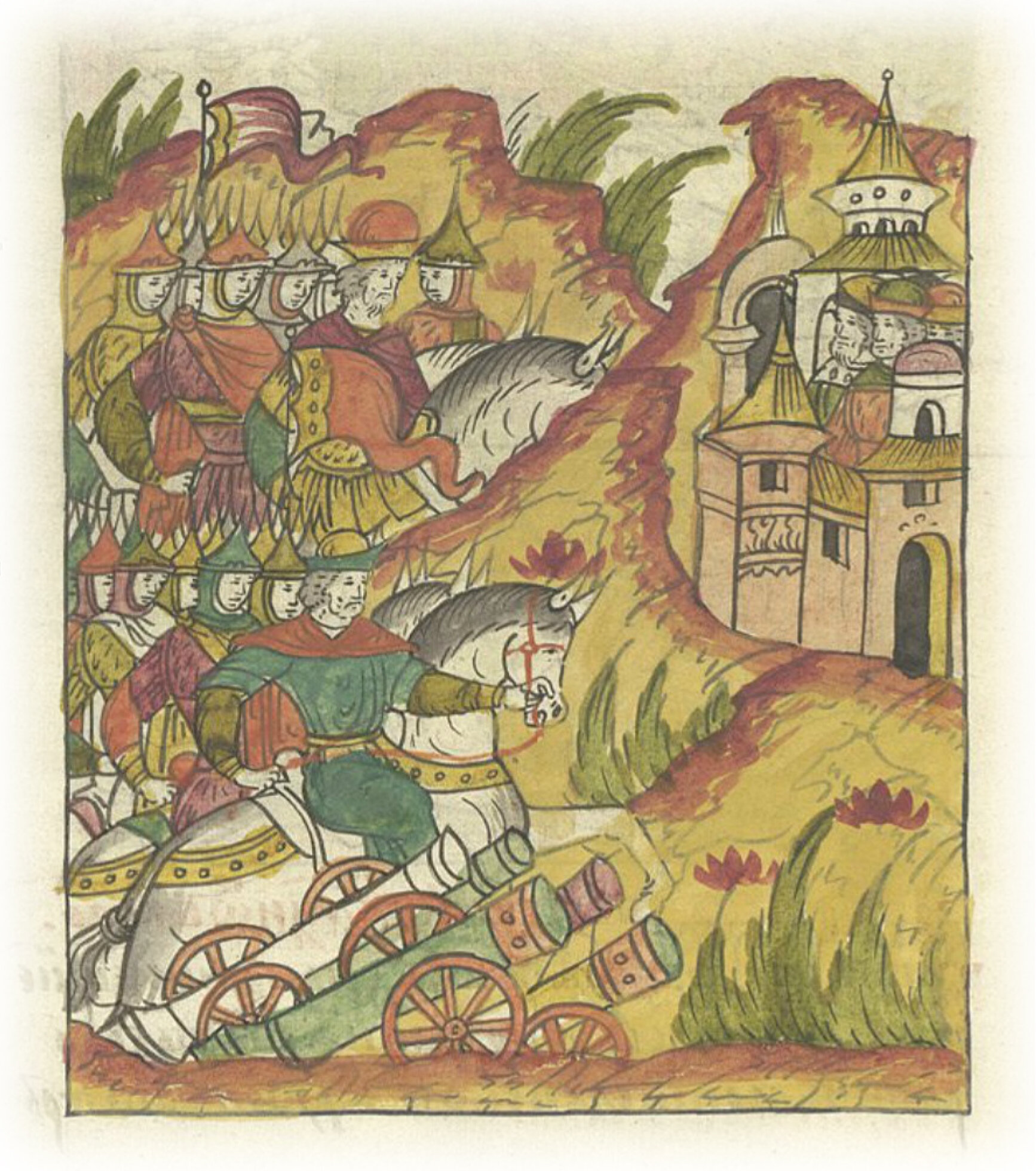 А сами пришли со всеми людьми и с пушками к немецкому городу Алысту*. И князь Василий с товарищами пришел к ним к Алысту в здравии со всеми людьми; * Мариенбург.