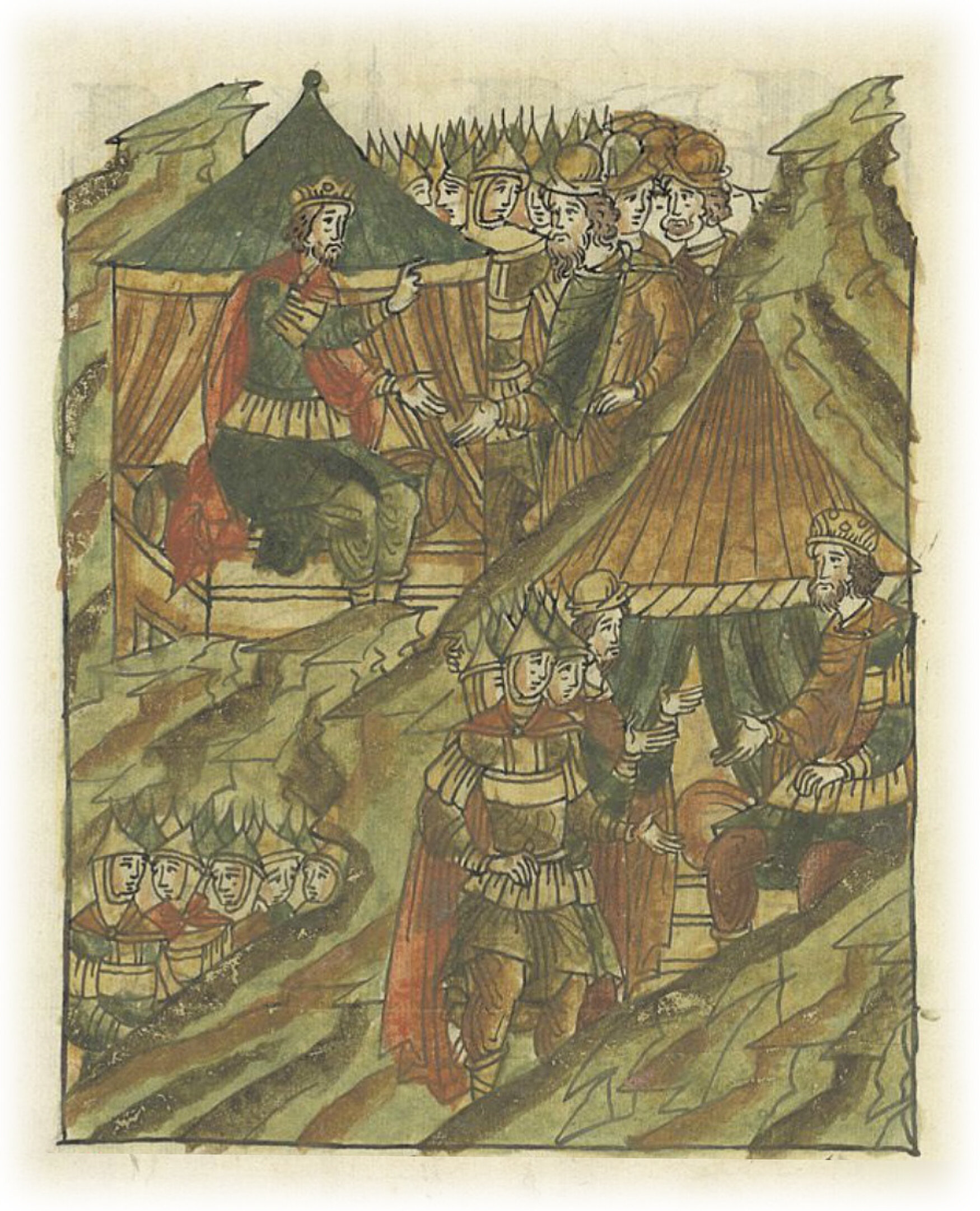 И после этого послали к князю Мстиславу Мстиславичу послание: «Брат Мстислав! Кажется нам, что забывшись, ты пришел с невеждами, дикими мужиками новгородцами и с безумными смолянами. Правильнее бы было тебе не слушать их», и они стали готовиться к битве.