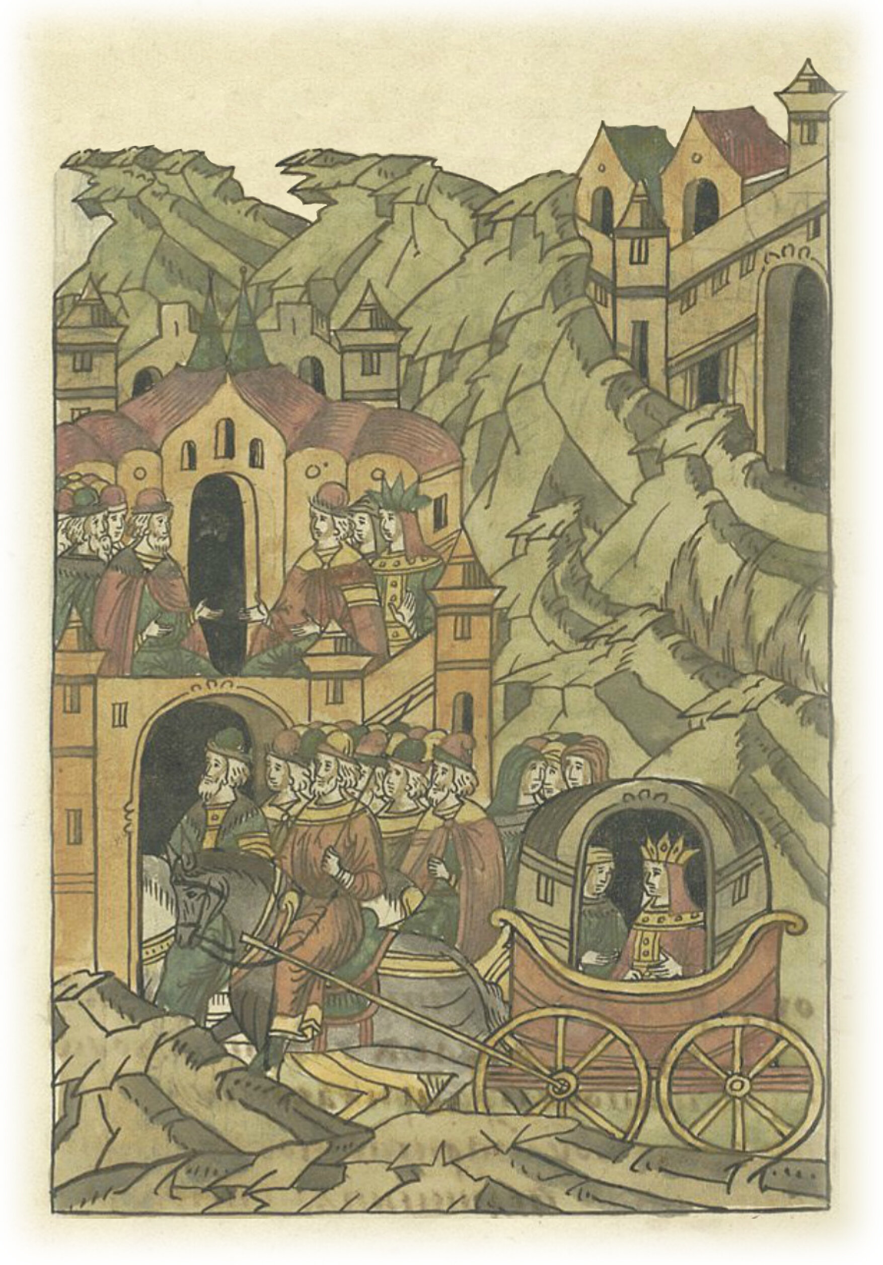 Князь Борис Василькович и его брат Глеб Василькович с княгиней возвращаются из Орды в Ростов.