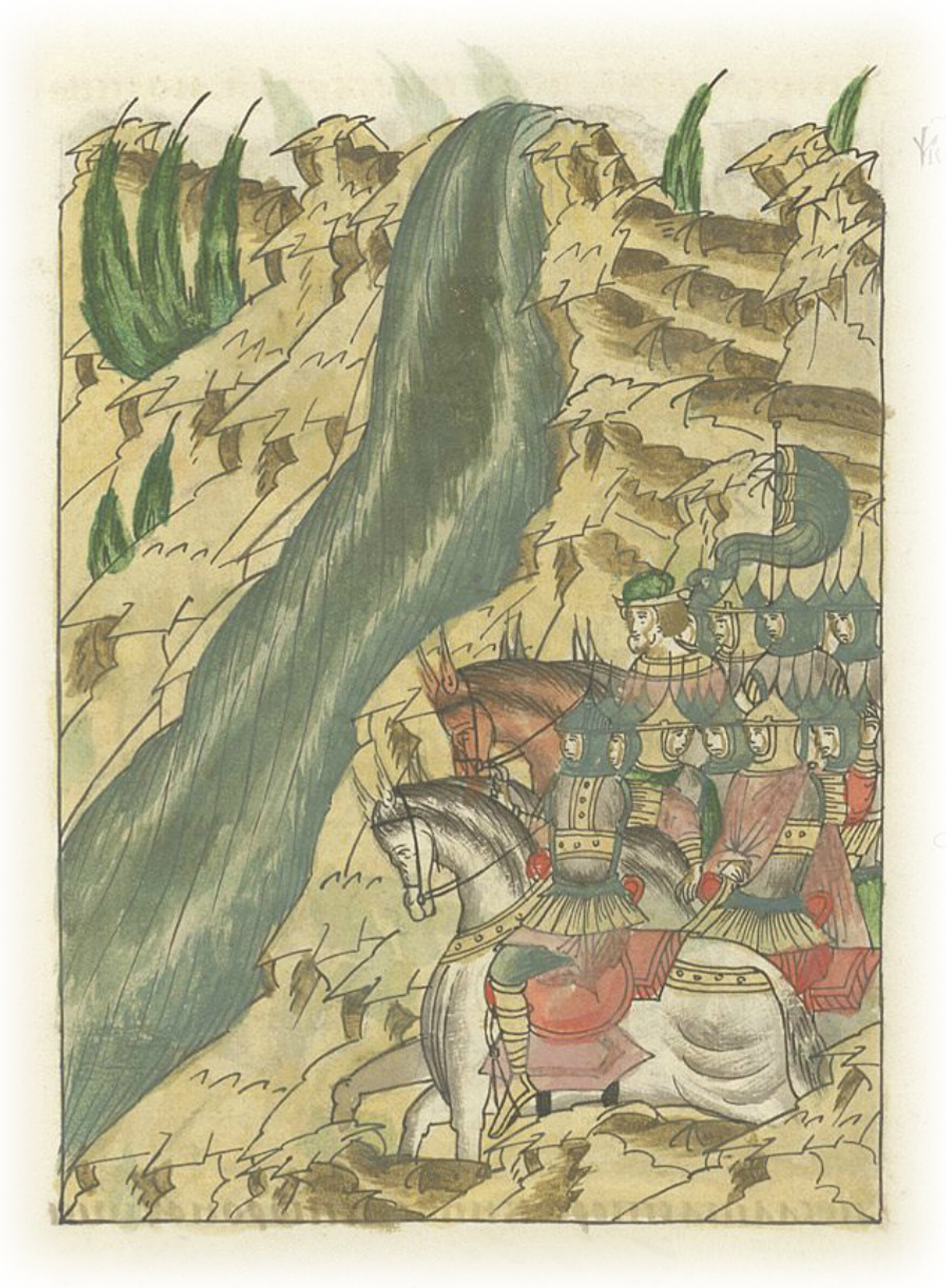 Воеводы царя Ивана Васильевича, разделившись, идут в погоню за царем Емгурчеем.