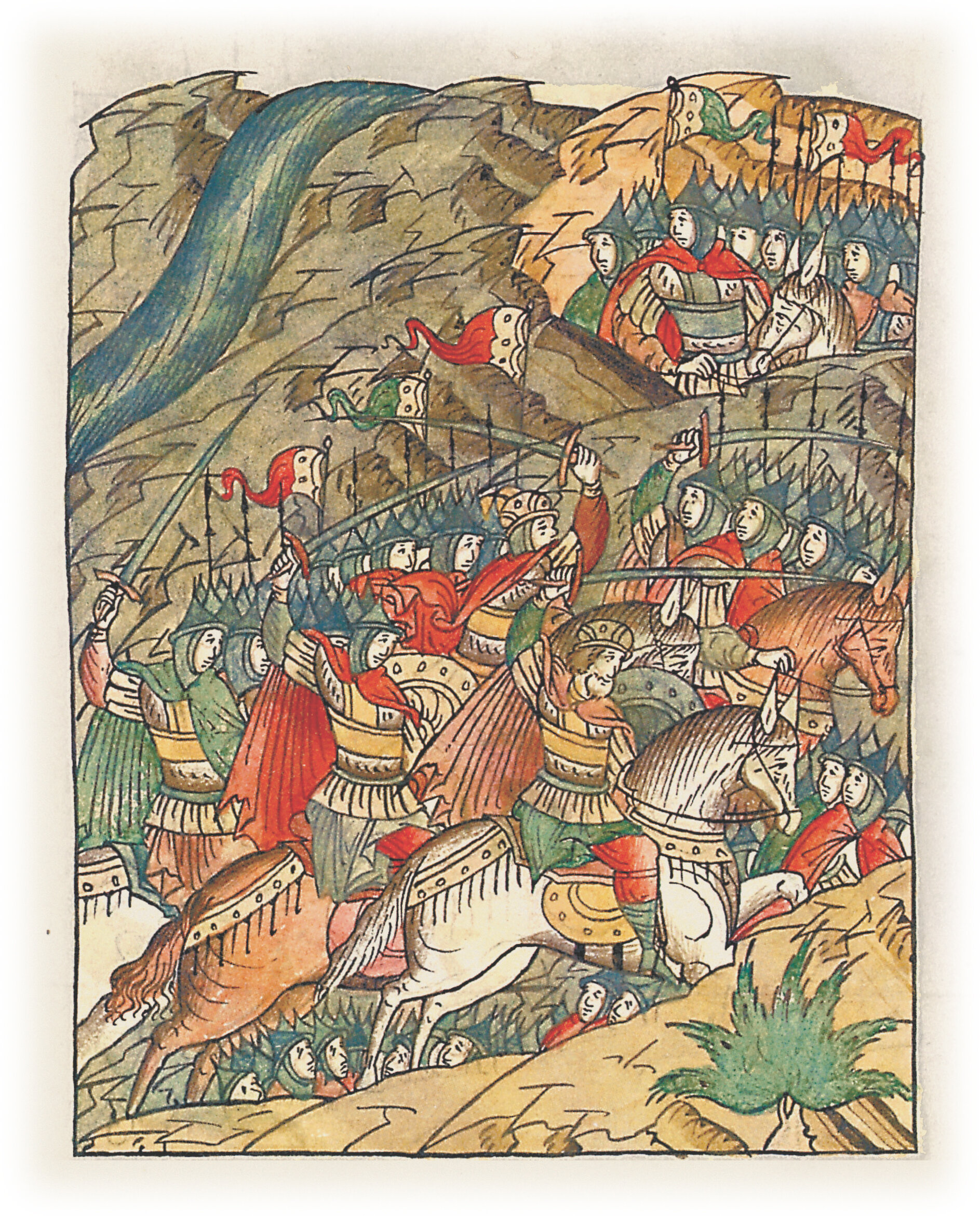 Воеводы царя Ивана Васильевича, разделившись, идут в погоню за царем Емгурчеем.
