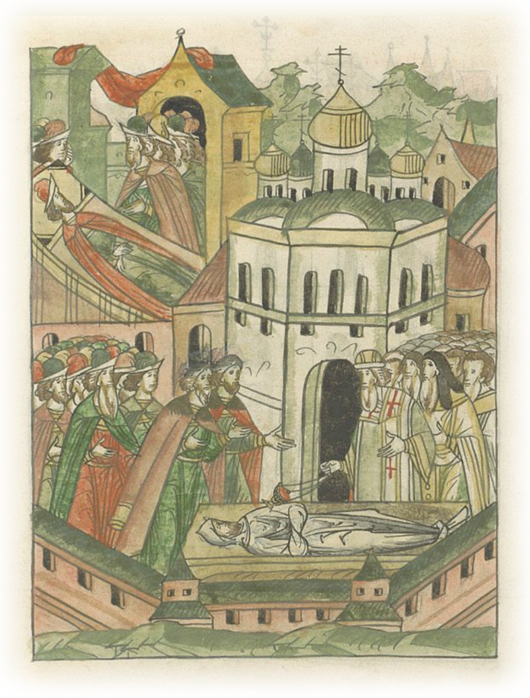 Кончина князя Андрея Васильевича Меньшого и его похороны в Москве в соборе архангела Михаила.