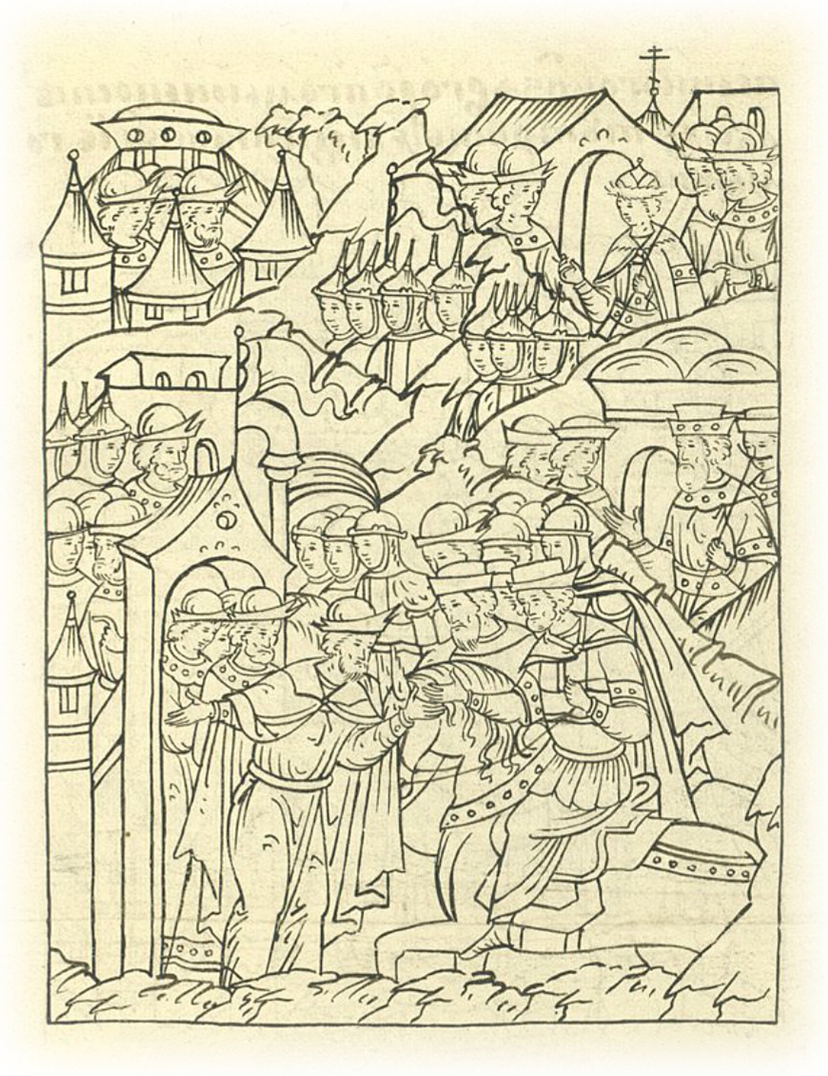 Языки говорят воеводам царя Ивана Васильевича, что магистр окопался большим рвом вокруг города Рындола, бьет из пушек и пищалей и приступает к Рындолу.