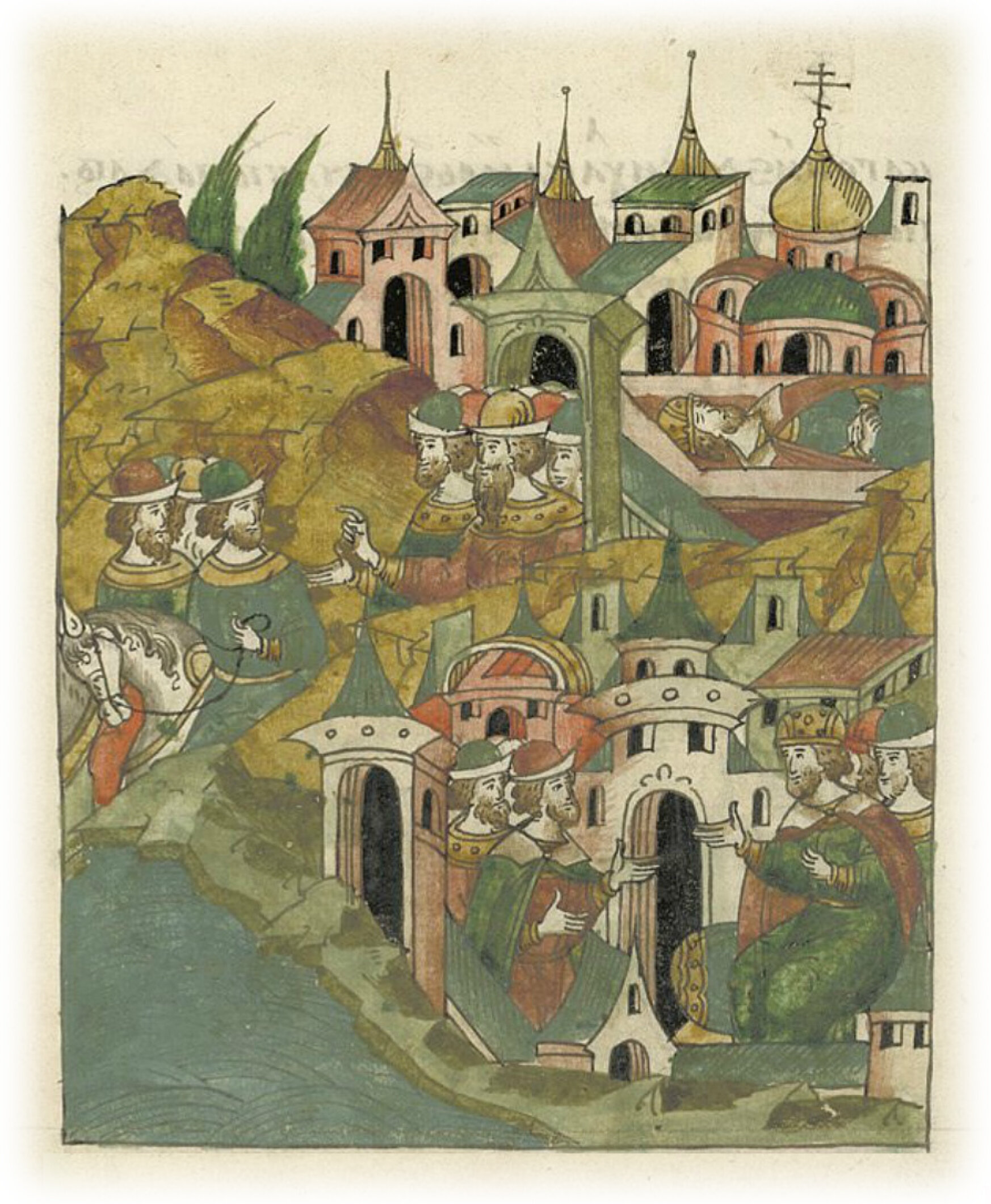 Ругодивские посадники Яким и Захар приезжают в Москву. Воеводы царя Ивана Васильевича Алексей Адашев и Иван Михайлов сообщают им, что государь пожалует их, если сдадут его воеводам помимо Ругодива Вышгород.