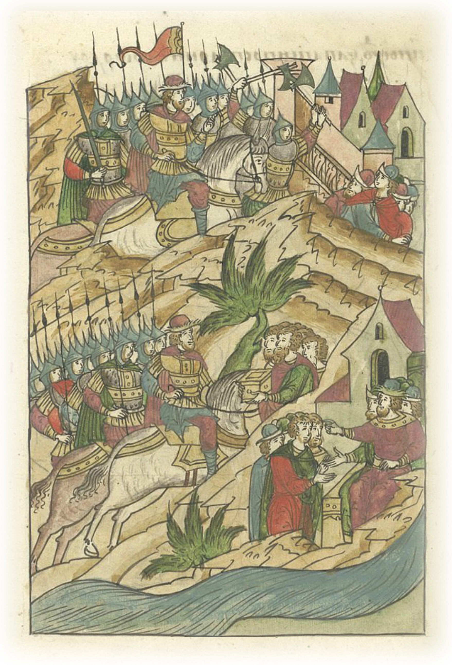 Языки говорят воеводам царя Ивана Васильевича, что магистр окопался большим рвом вокруг города Рындола, бьет из пушек и пищалей и приступает к Рындолу.