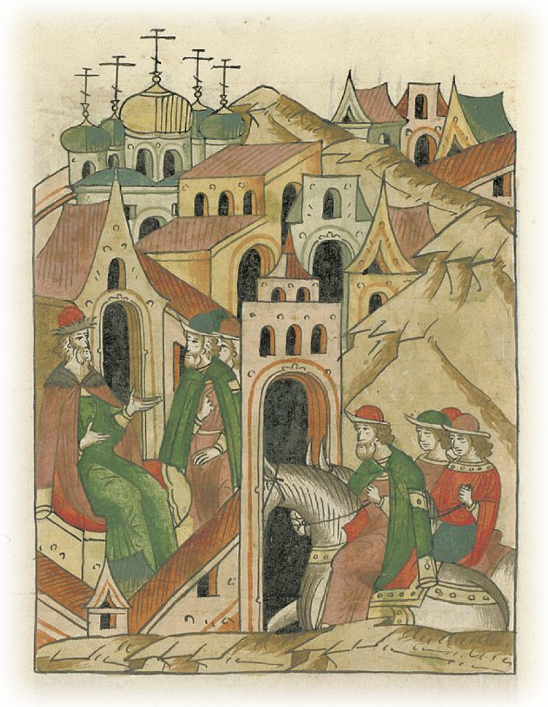 Ругодивские посадники Яким и Захар приезжают в Москву. Воеводы царя Ивана Васильевича Алексей Адашев и Иван Михайлов сообщают им, что государь пожалует их, если сдадут его воеводам помимо Ругодива Вышгород.