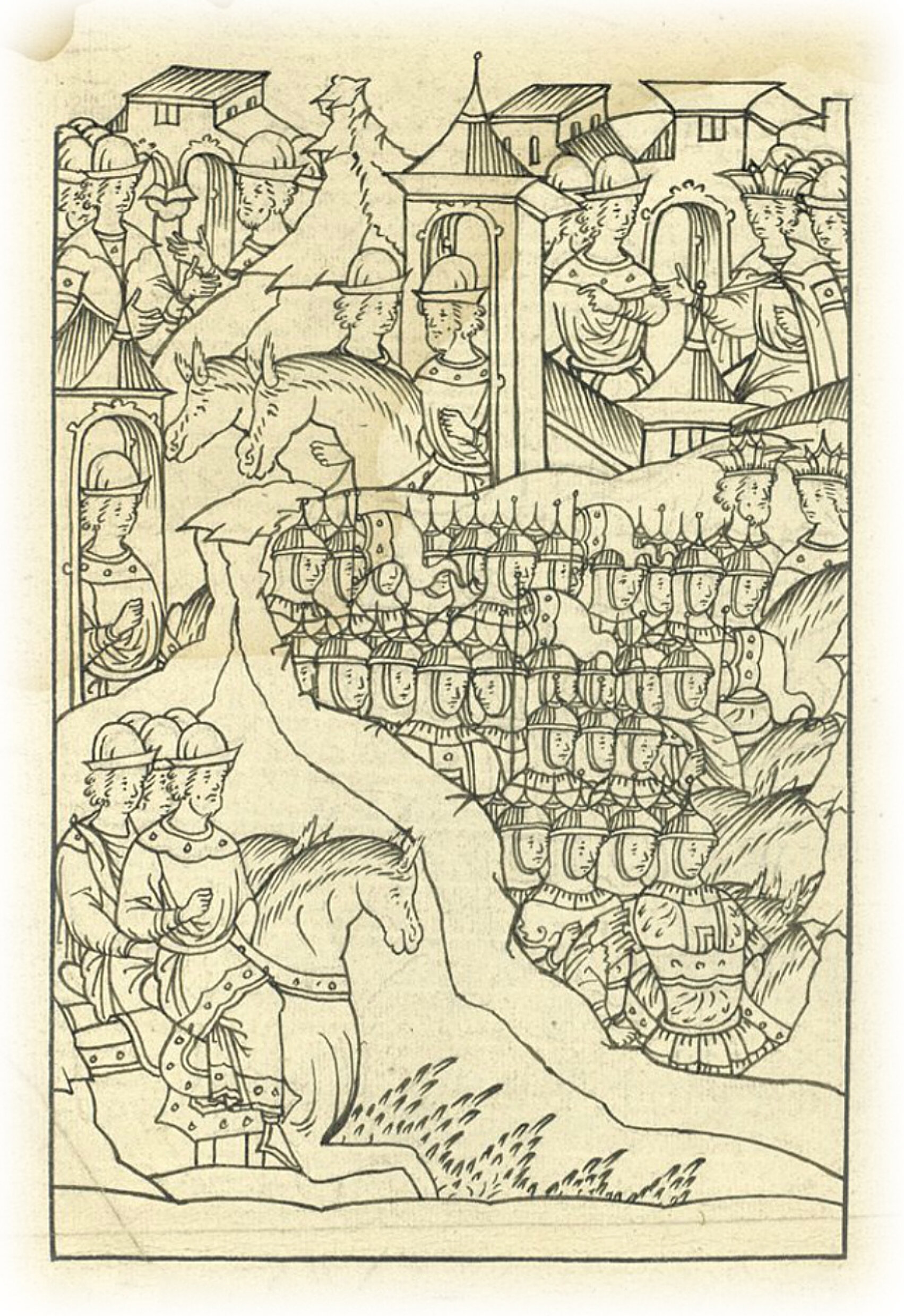Языки говорят воеводам царя Ивана Васильевича, что магистр окопался большим рвом вокруг города Рындола, бьет из пушек и пищалей и приступает к Рындолу.