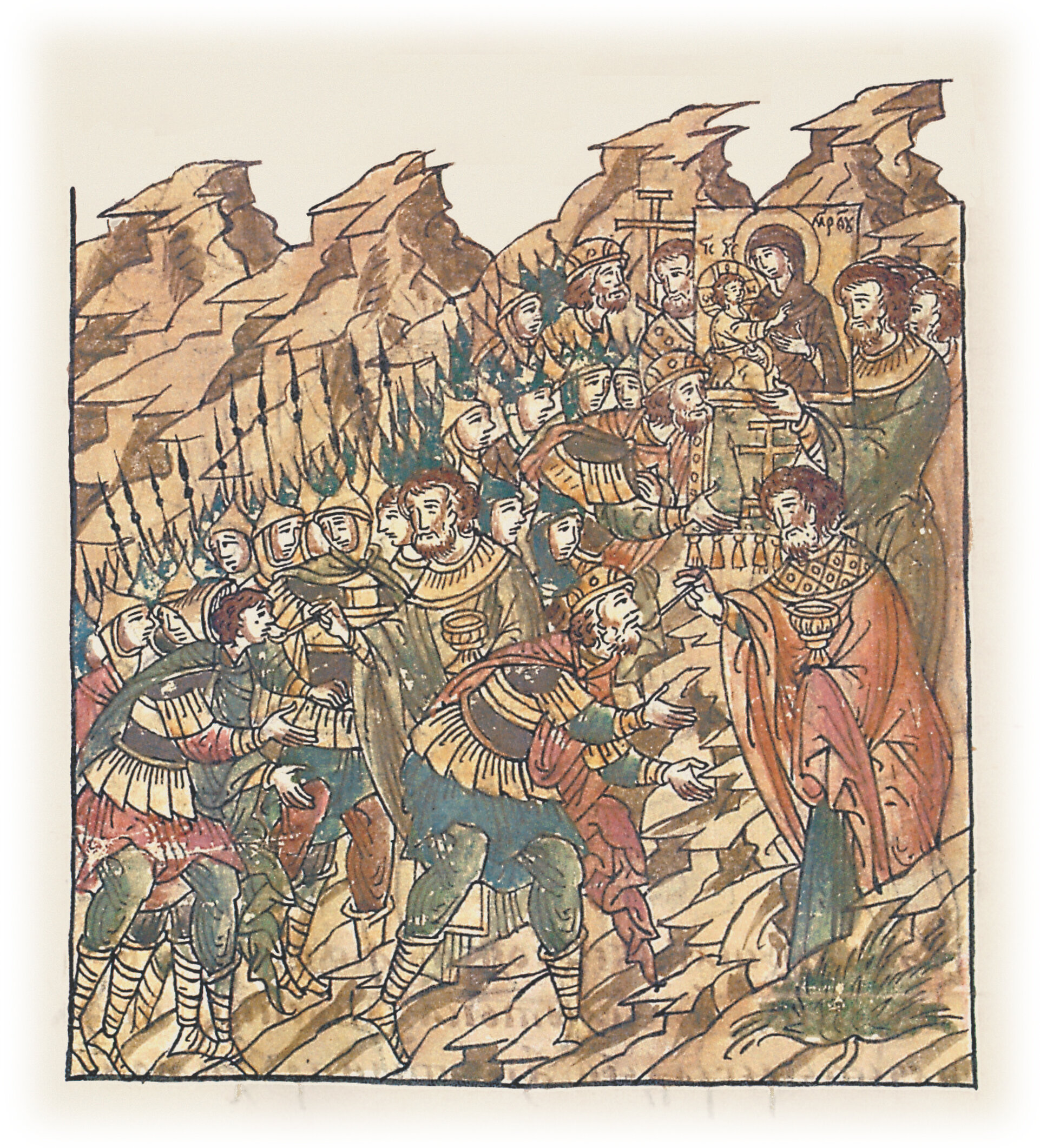 Войско князя Андрея Боголюбского перед битвой с болгарами молится и причащается.
