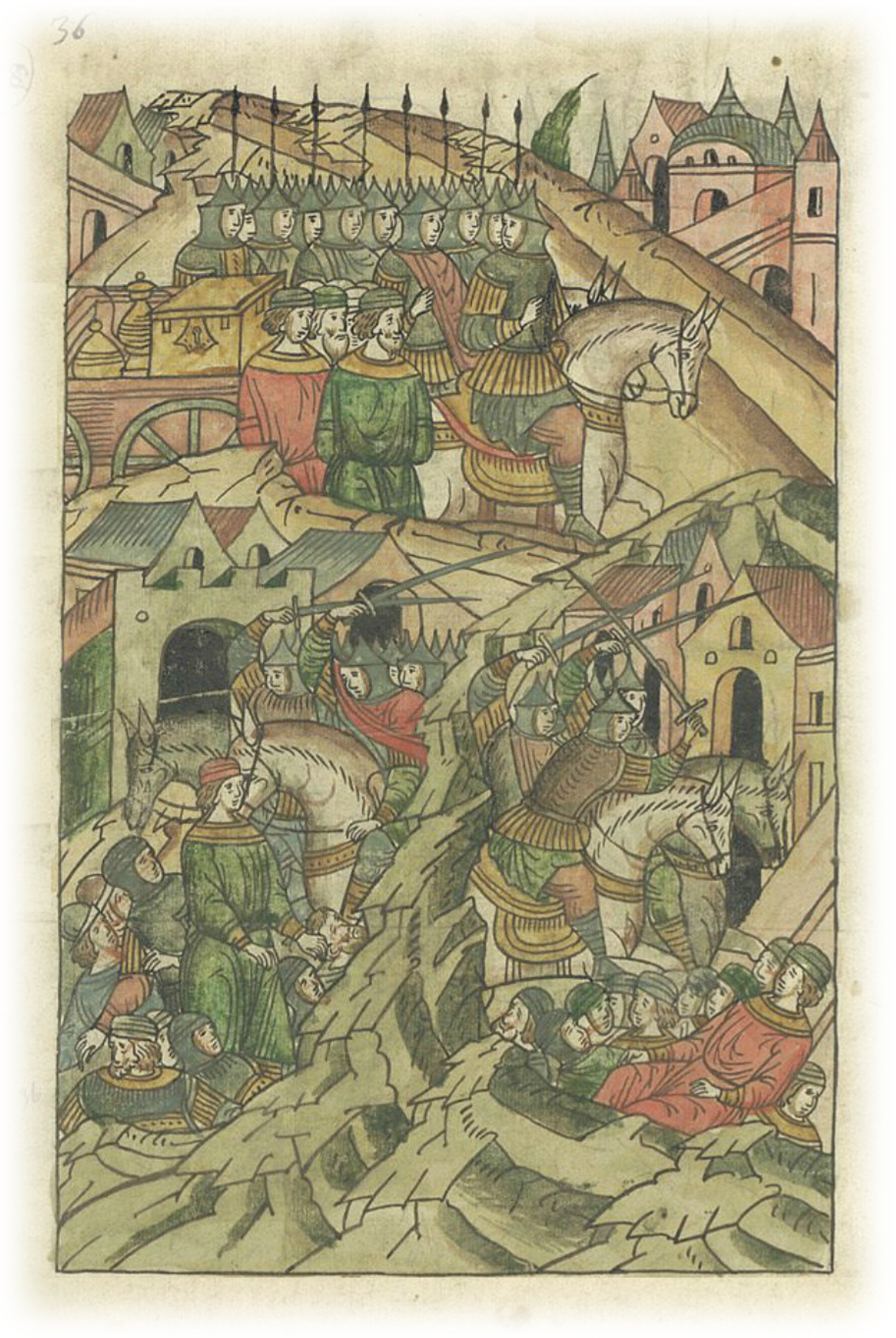 Языки говорят воеводам царя Ивана Васильевича, что магистр окопался большим рвом вокруг города Рындола, бьет из пушек и пищалей и приступает к Рындолу.