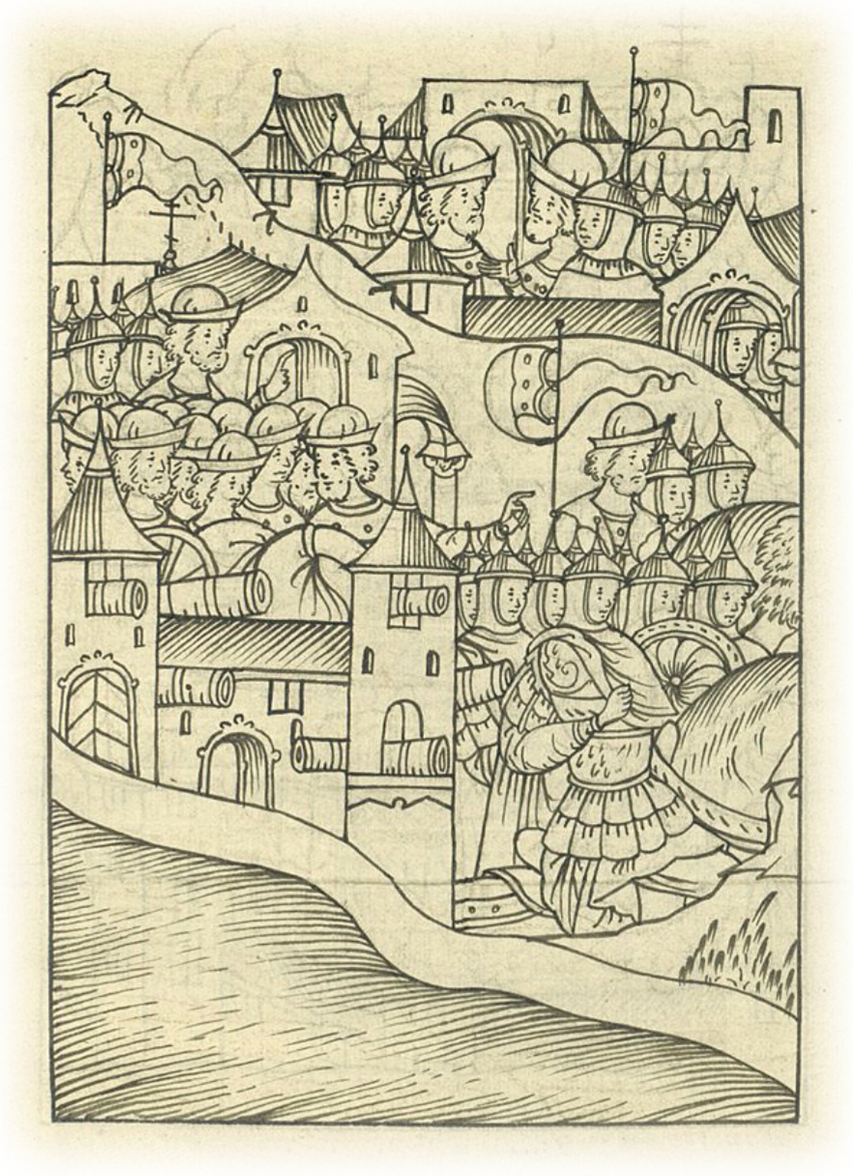 Языки говорят воеводам царя Ивана Васильевича, что магистр окопался большим рвом вокруг города Рындола, бьет из пушек и пищалей и приступает к Рындолу.