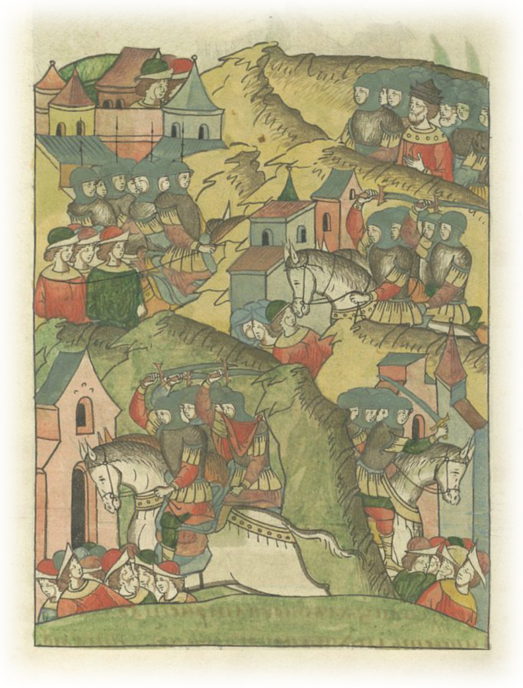 Языки говорят воеводам царя Ивана Васильевича, что магистр окопался большим рвом вокруг города Рындола, бьет из пушек и пищалей и приступает к Рындолу.