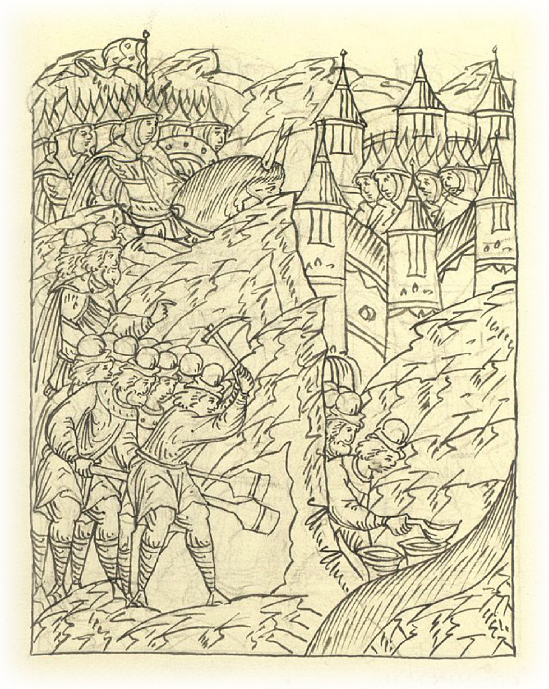 Языки говорят воеводам царя Ивана Васильевича, что магистр окопался большим рвом вокруг города Рындола, бьет из пушек и пищалей и приступает к Рындолу.