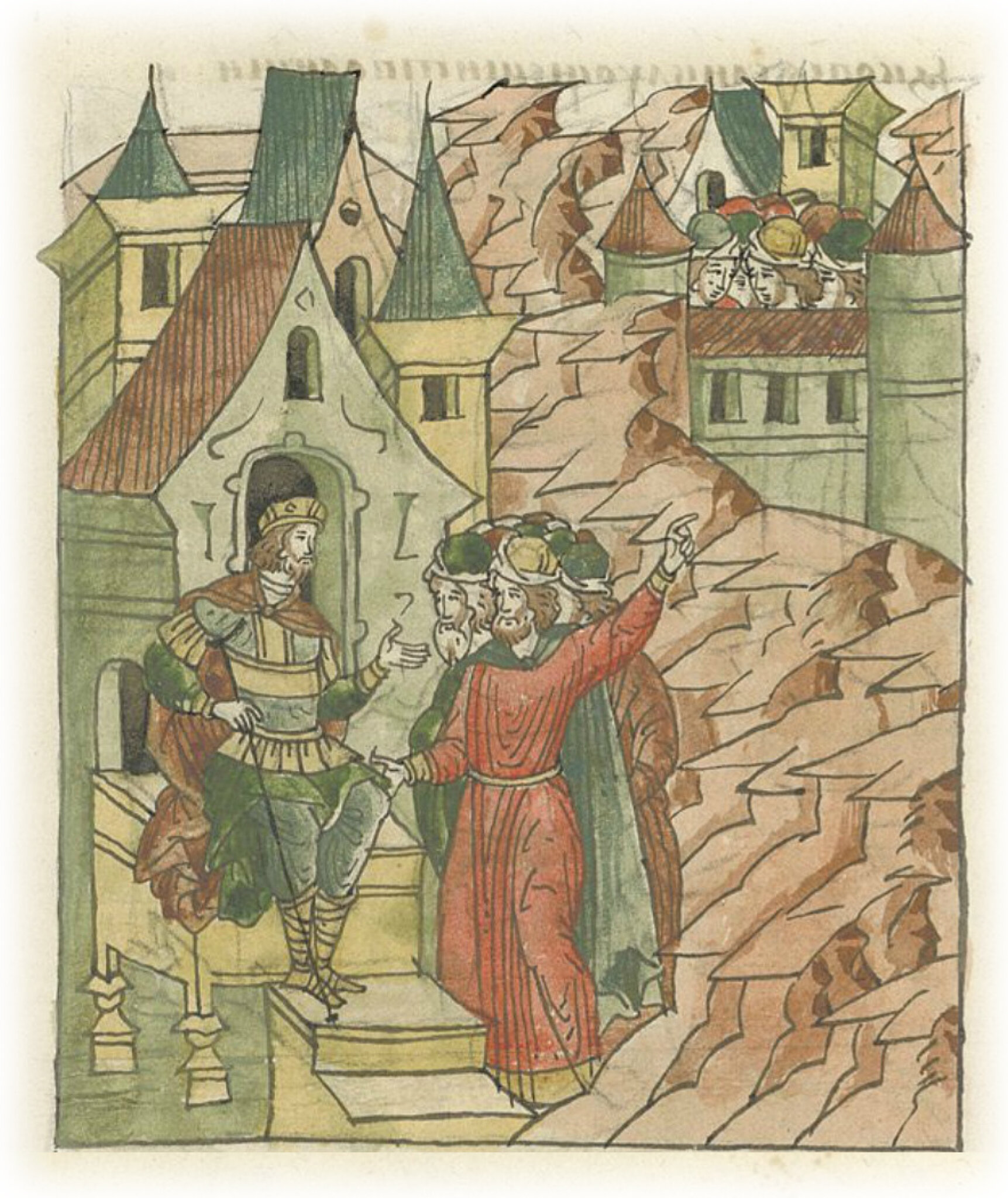 Ругодивские посадники Яким и Захар приезжают в Москву. Воеводы царя Ивана Васильевича Алексей Адашев и Иван Михайлов сообщают им, что государь пожалует их, если сдадут его воеводам помимо Ругодива Вышгород.