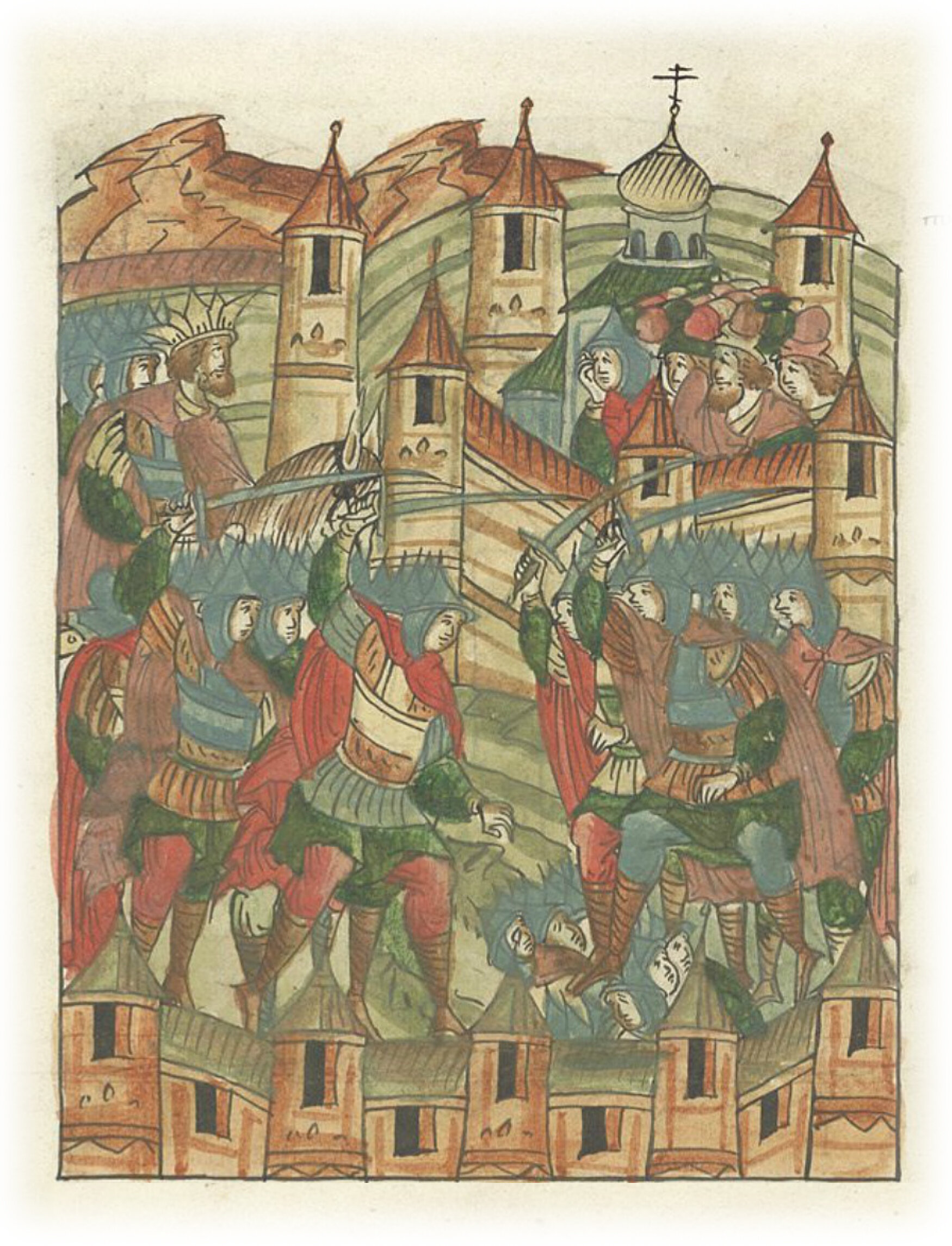 Утром же выступили против них татары, и началась жестокая битва, изнемогали люди