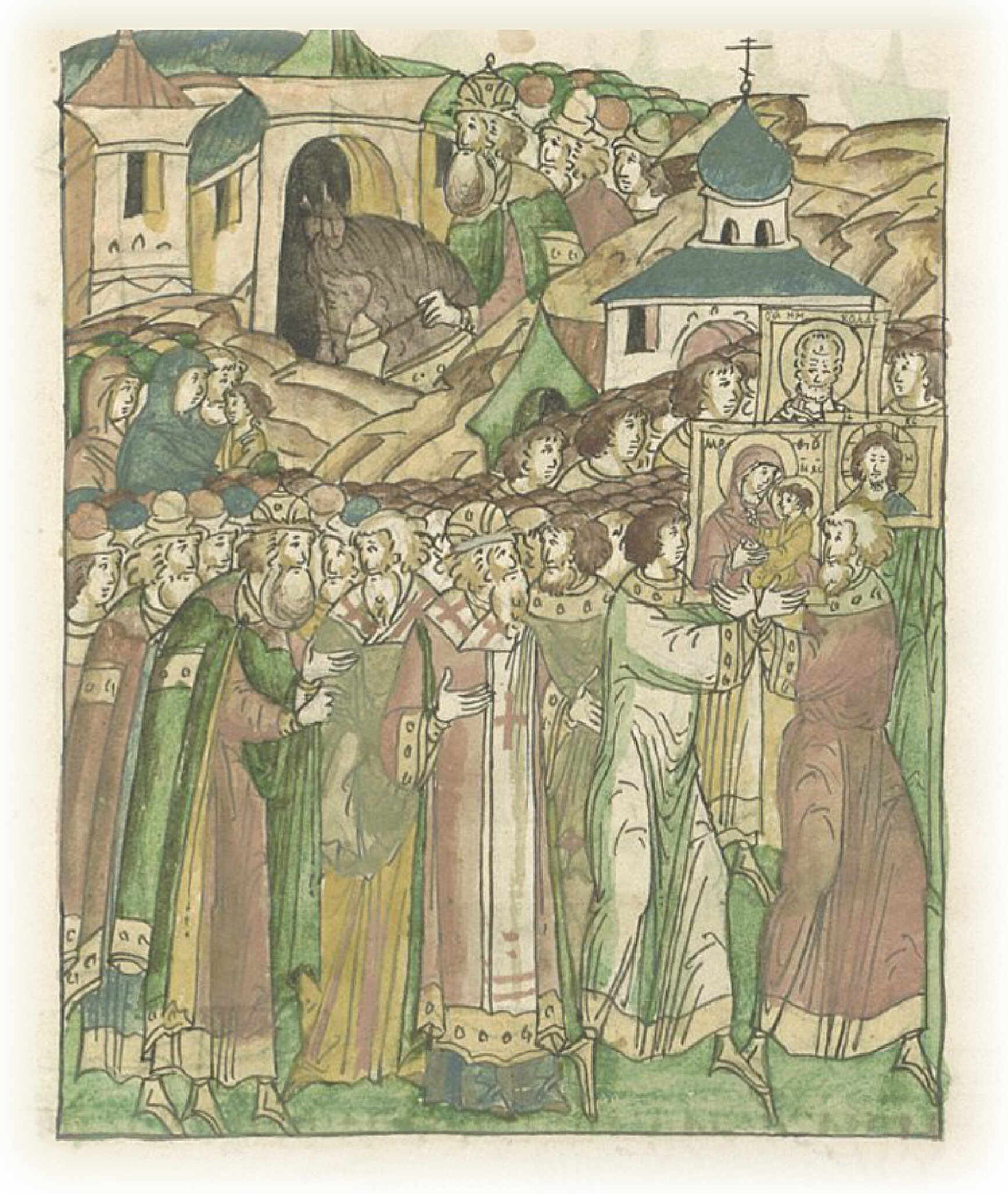 и отпустил святые иконы к городу Владимиру. И послал проводить их до Владимира Игнатия, архимандрита Андрониковского. А благоверный великий князь Василий, проводив святые иконы за Андроников (монастырь), со многим молением и радостью возвратился в город.