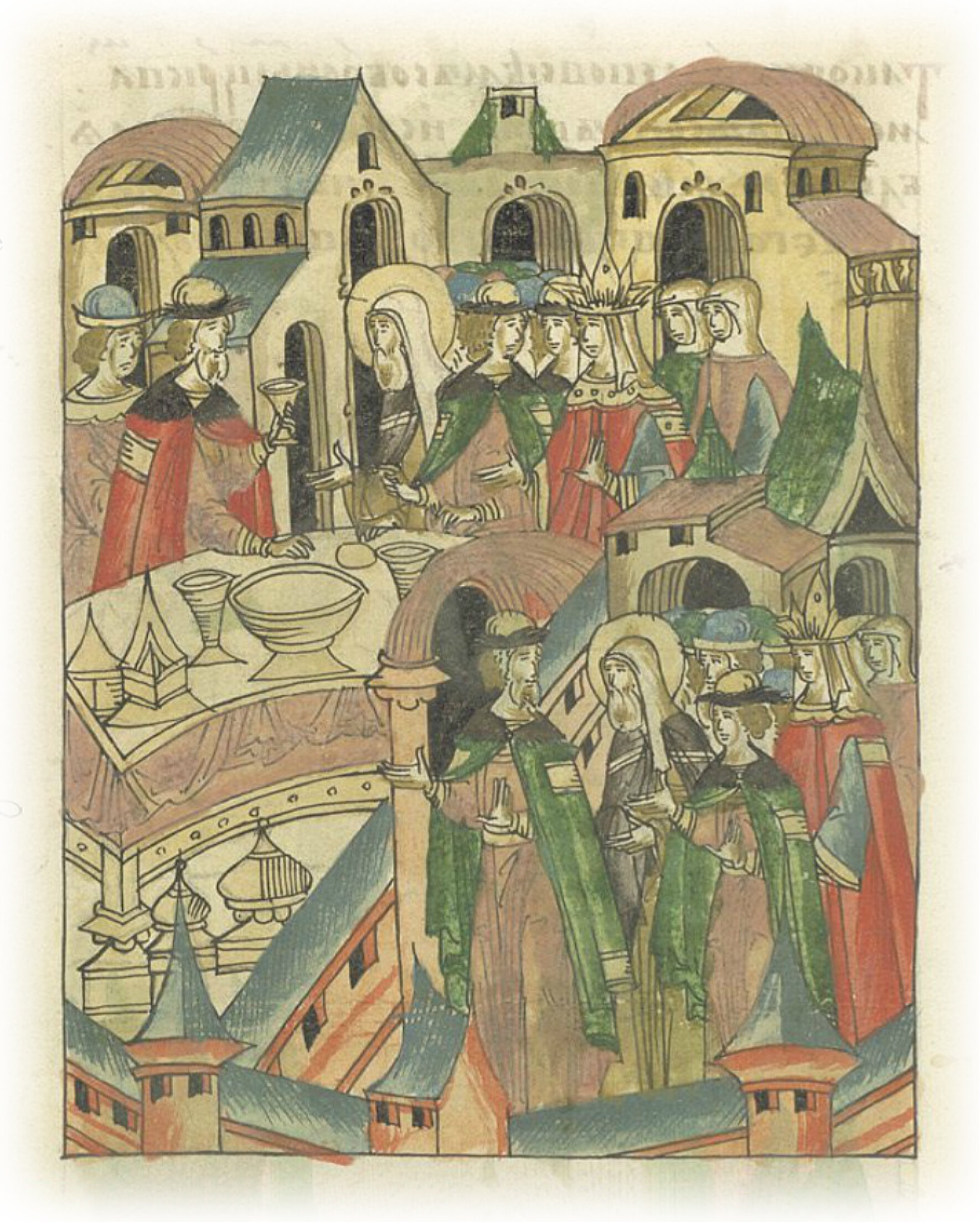 Великий князь Василий Васильевич идет на обед вместе с митрополитом, матерью, детьми и боярами.