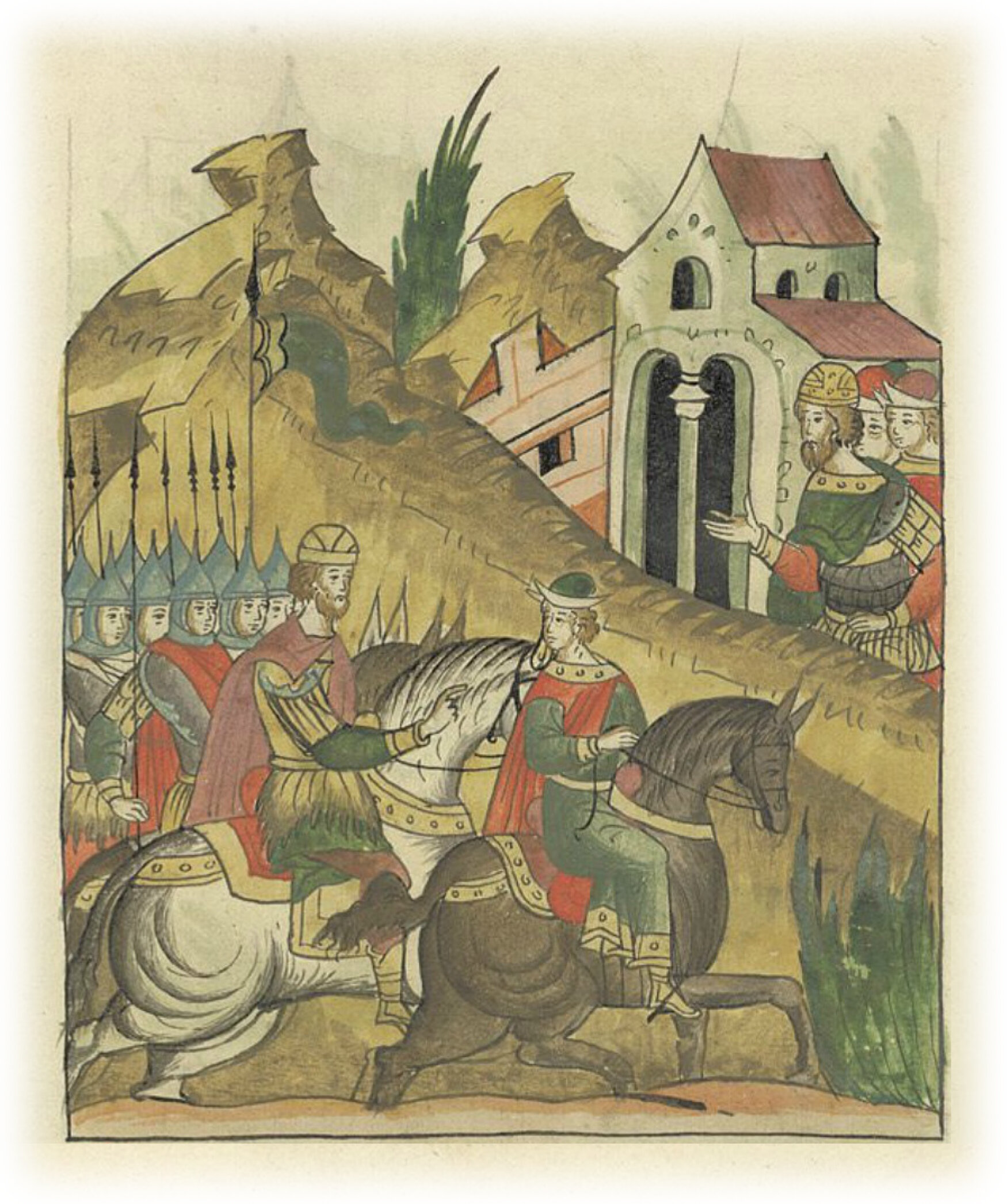 Ругодивские посадники Яким и Захар приезжают в Москву. Воеводы царя Ивана Васильевича Алексей Адашев и Иван Михайлов сообщают им, что государь пожалует их, если сдадут его воеводам помимо Ругодива Вышгород.