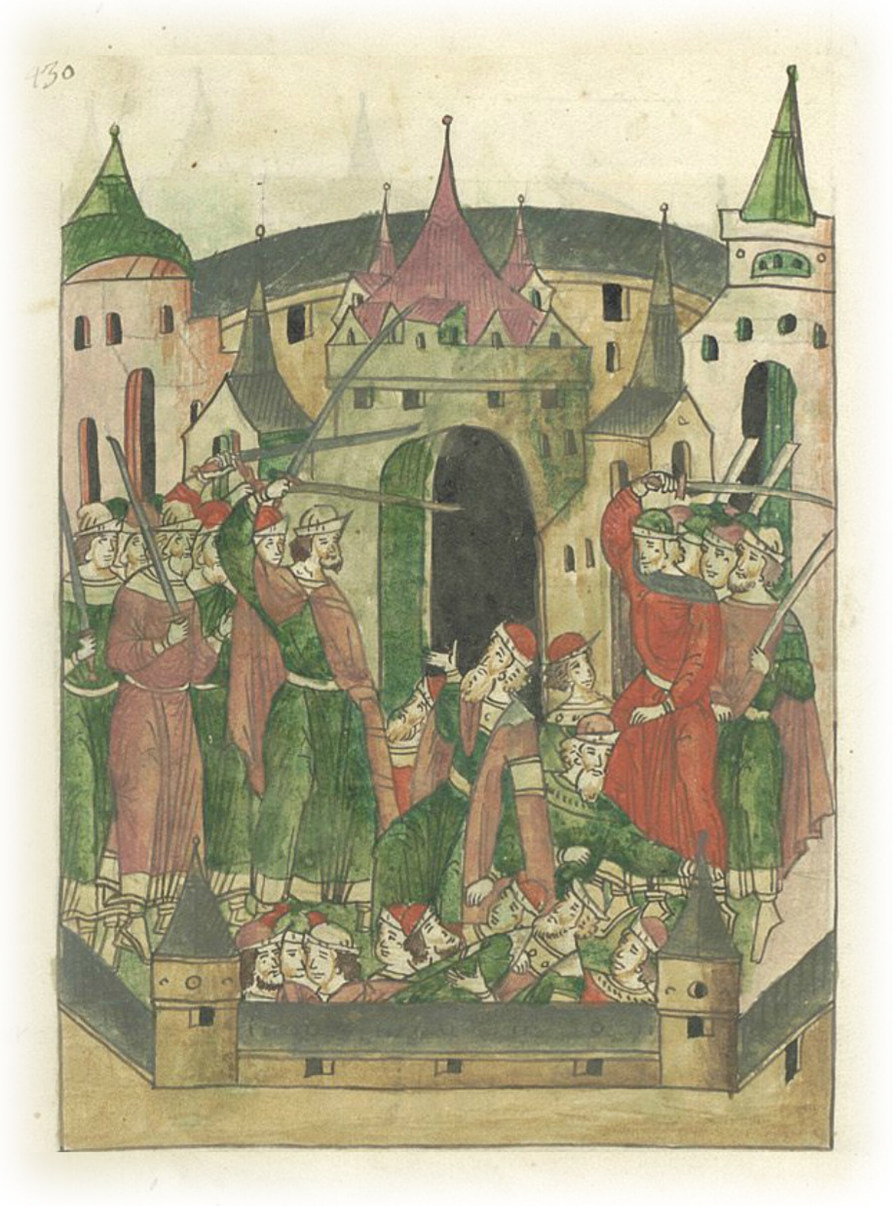 В Нижнем Новгороде избивают бояр князя Андрея Александровича.