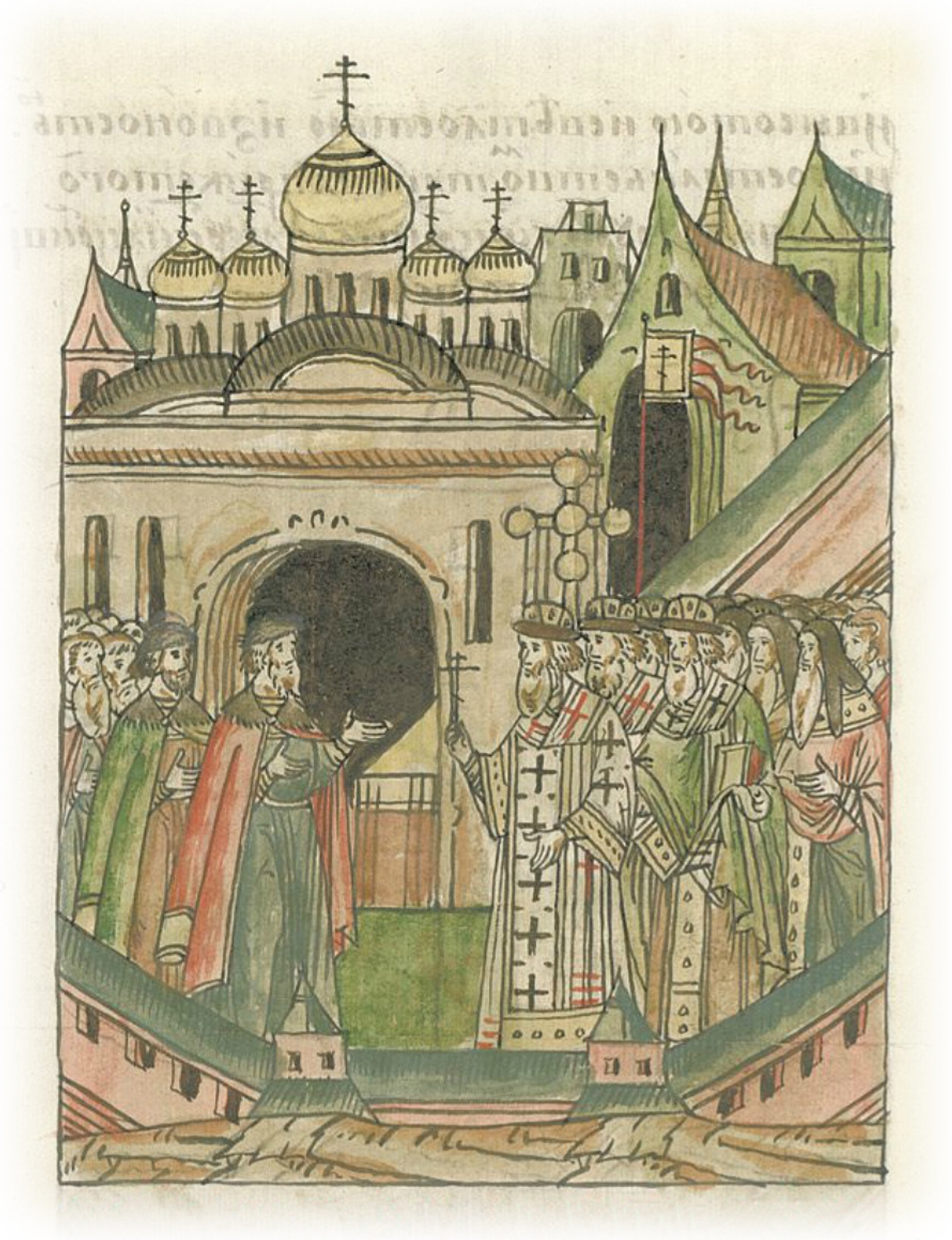 Освящение соборной церкви пресвятой Богородицы в Москве митрополитом Геронтием.